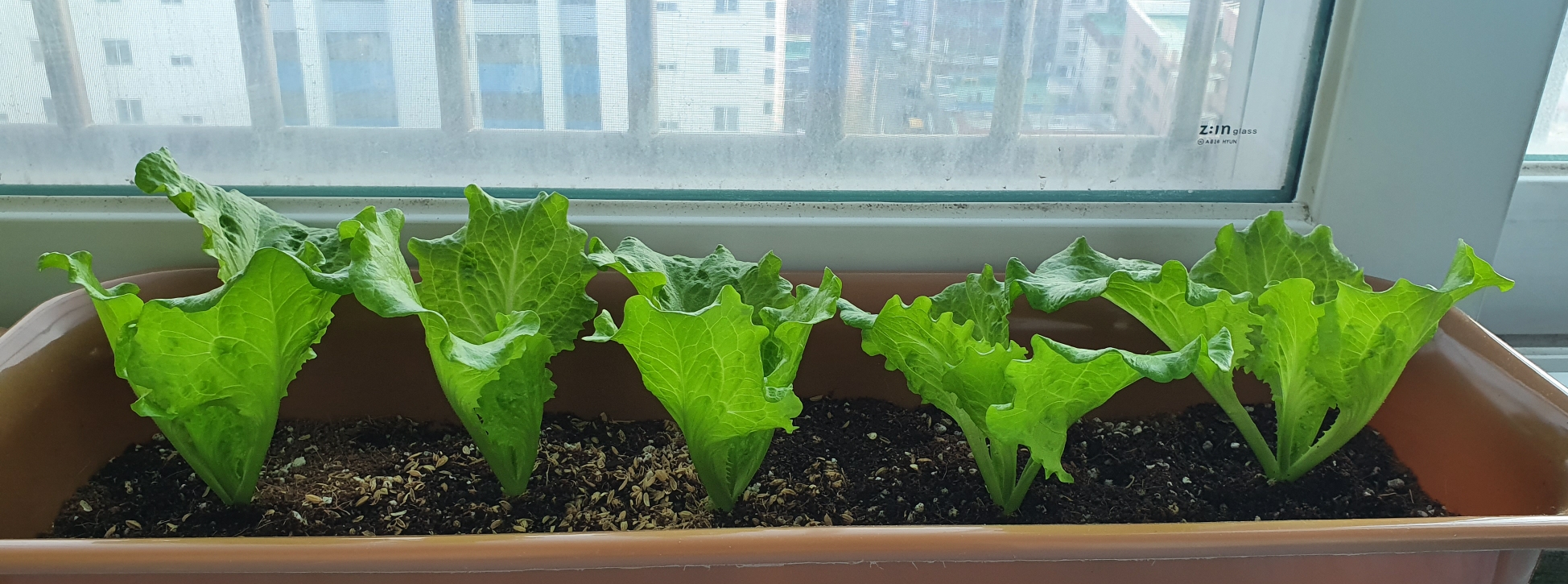 요즘 애들이 고기랑 잘 싸먹어서 할머니도 애들 먹이려고 상추모종을 사서 키우고 있다.