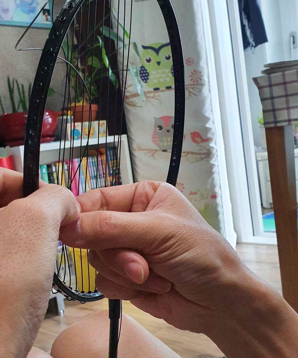 세로줄에서 너무 당긴 나머지 둥근 배드민턴채가 되었다.