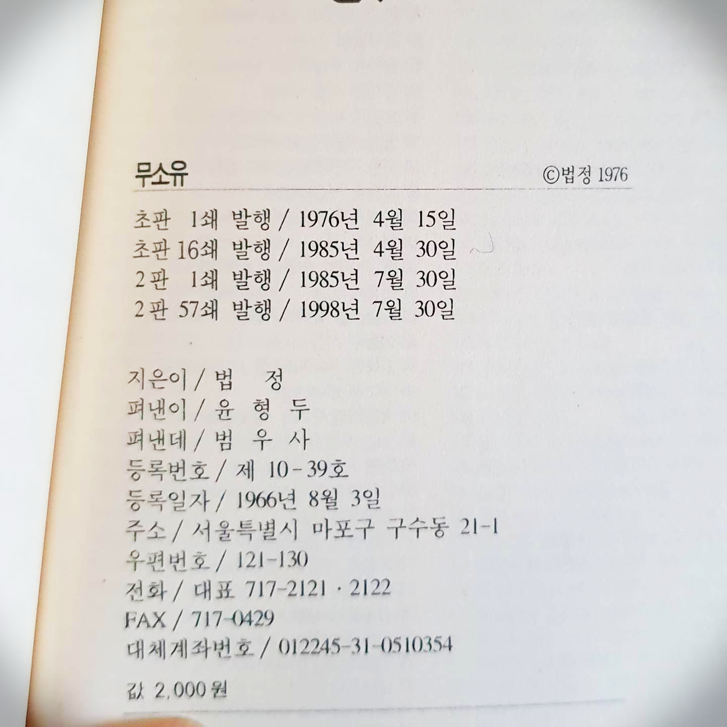 초판은 아니고 2판 57쇄 1998년 7월 30일자 본.