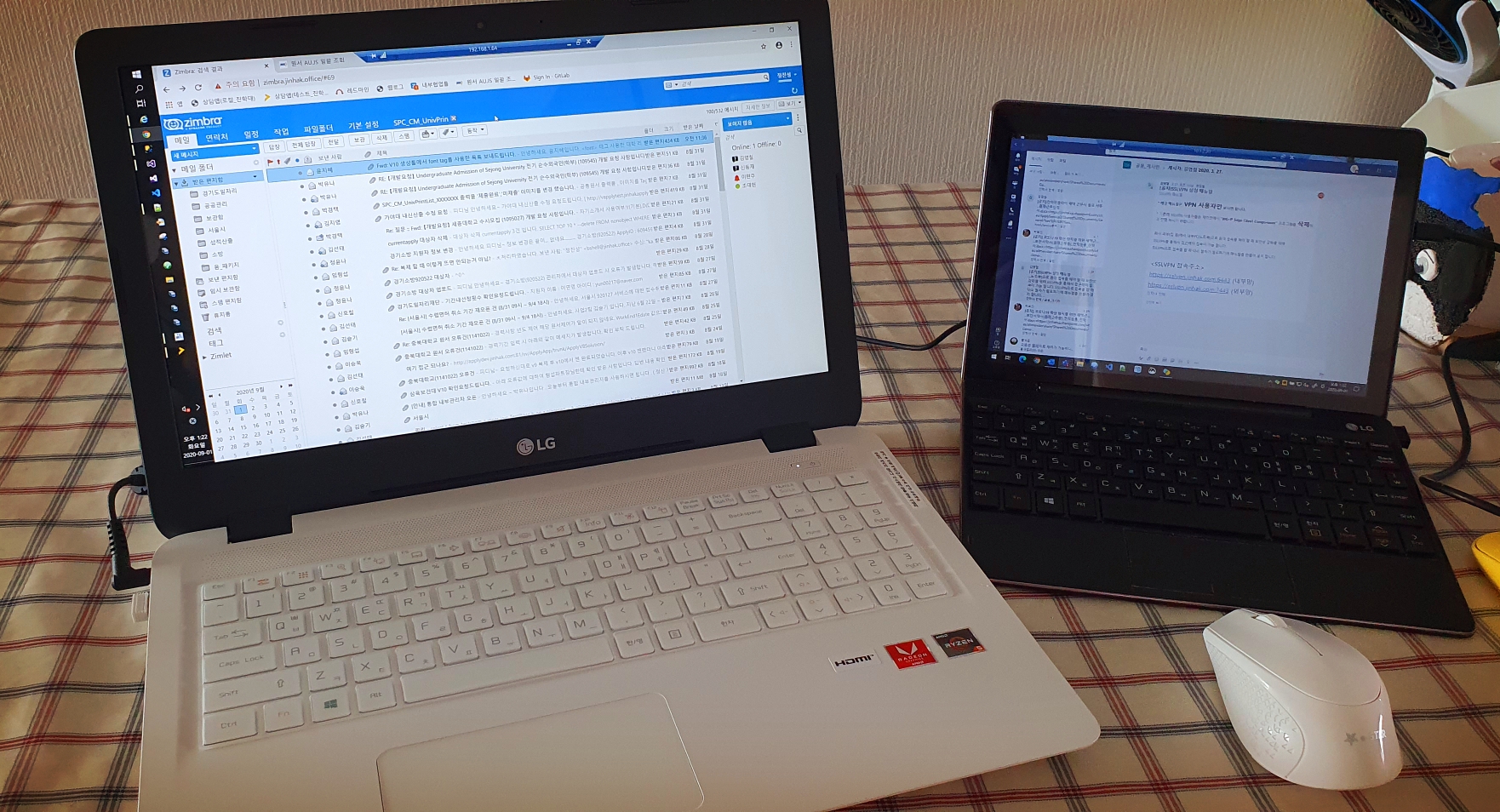 10인치 엘지 투인원 노트북으로 일하고 있었다.