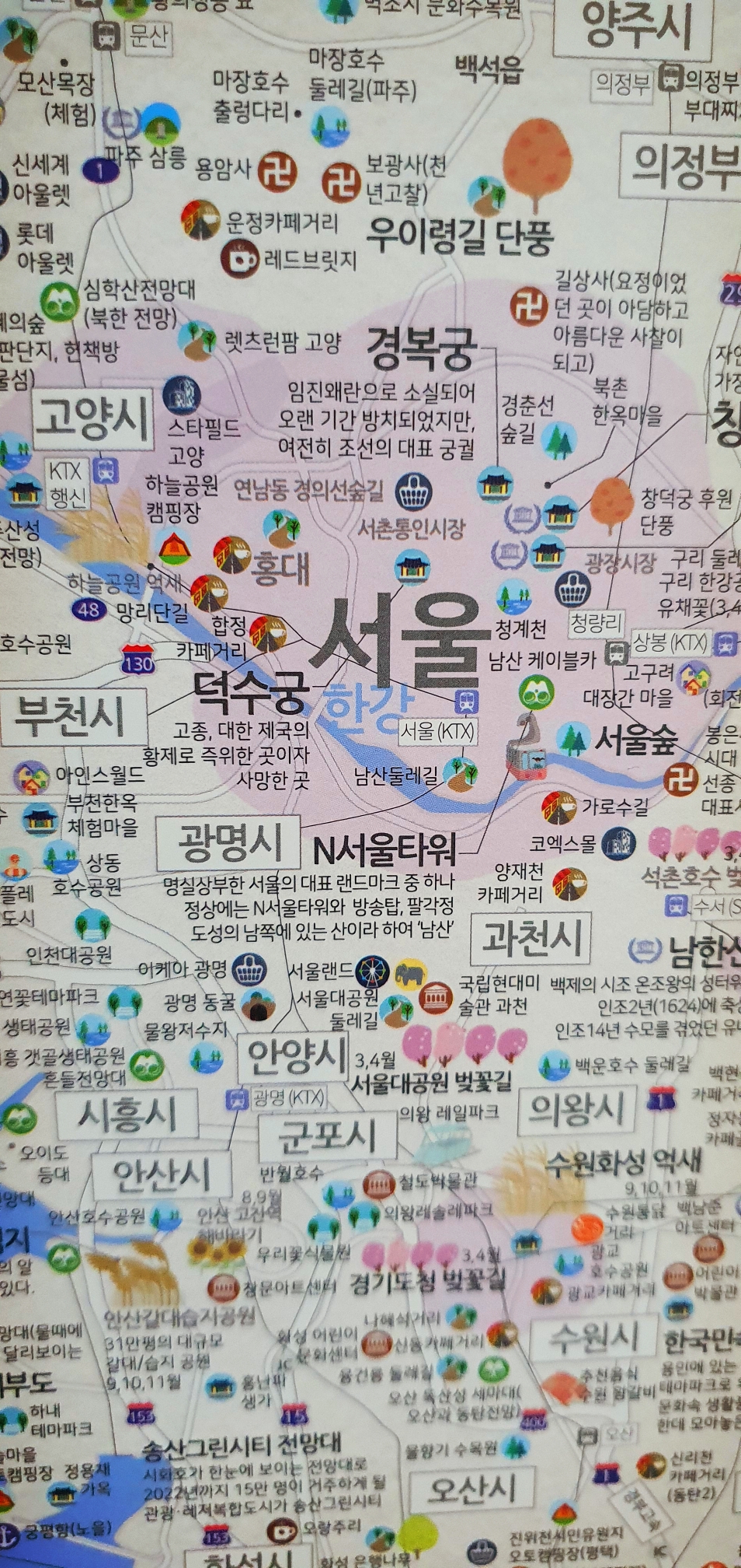 여행지도라 그 지역에 유명한 위치가 표시되어 있다.
