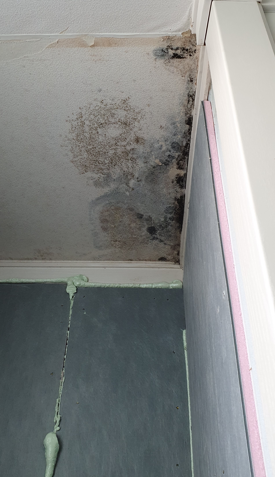 이부분에 책장을 짜서 넣어놨는데 곰팡이 냄새가 나서 드러내고보니 천장 쪽에 저렇게 꺼멓게 피어나있다.