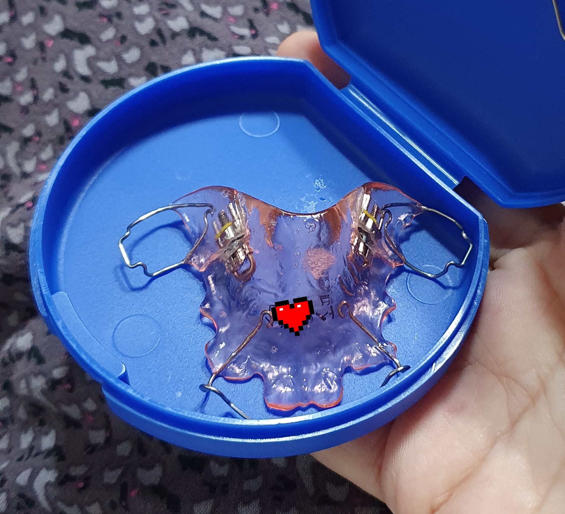 성인의 경우는 이런 장치를 입천장에 나사로 고정하고 앞니쪽을 늘려서(늘리다보면 뼈 자체가 쪼개지는데, 그 안에 뼈가 채워지면서..) 공간확보를 하거나 발치를 하는 방식인데 이가 나오는 이 시기엔 선택지가 좀 더 있다.