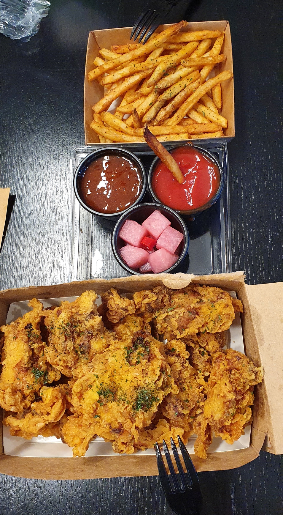 저녁은 위캔바에서 후라이드치킨 픽업해서 해결.
