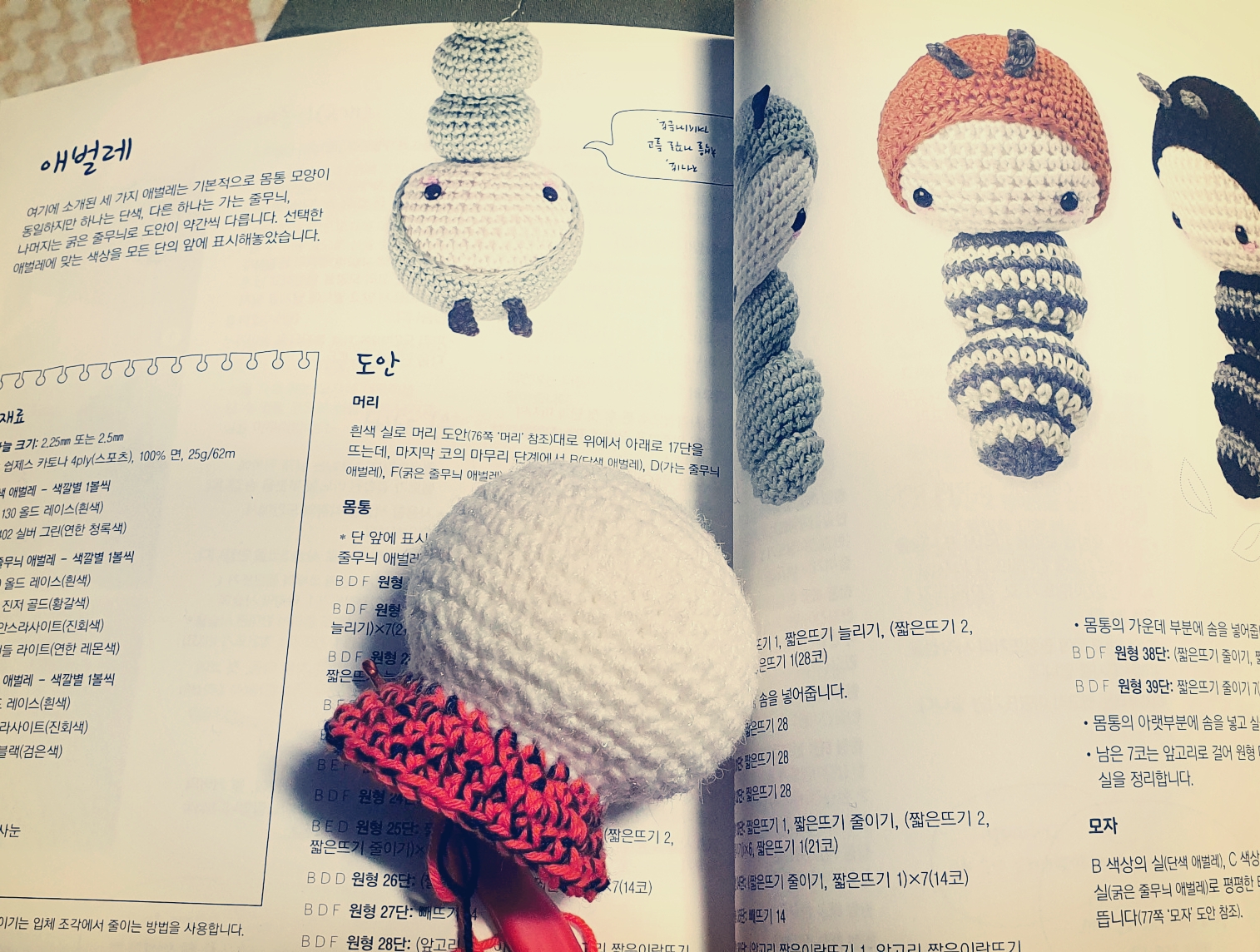 목부분 이을 때 이랑뜨기로 했어야 했는데 그냥 했더니 저렇게 되뿟네. 거기다가 솜을 목까지 너무 넣어서 엄청 우람한 애벌레가 되었다.
