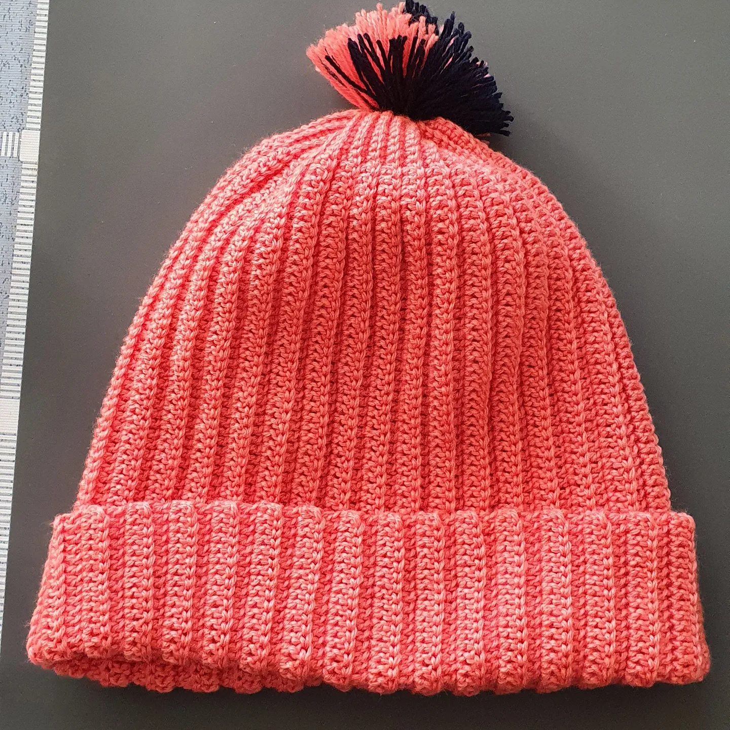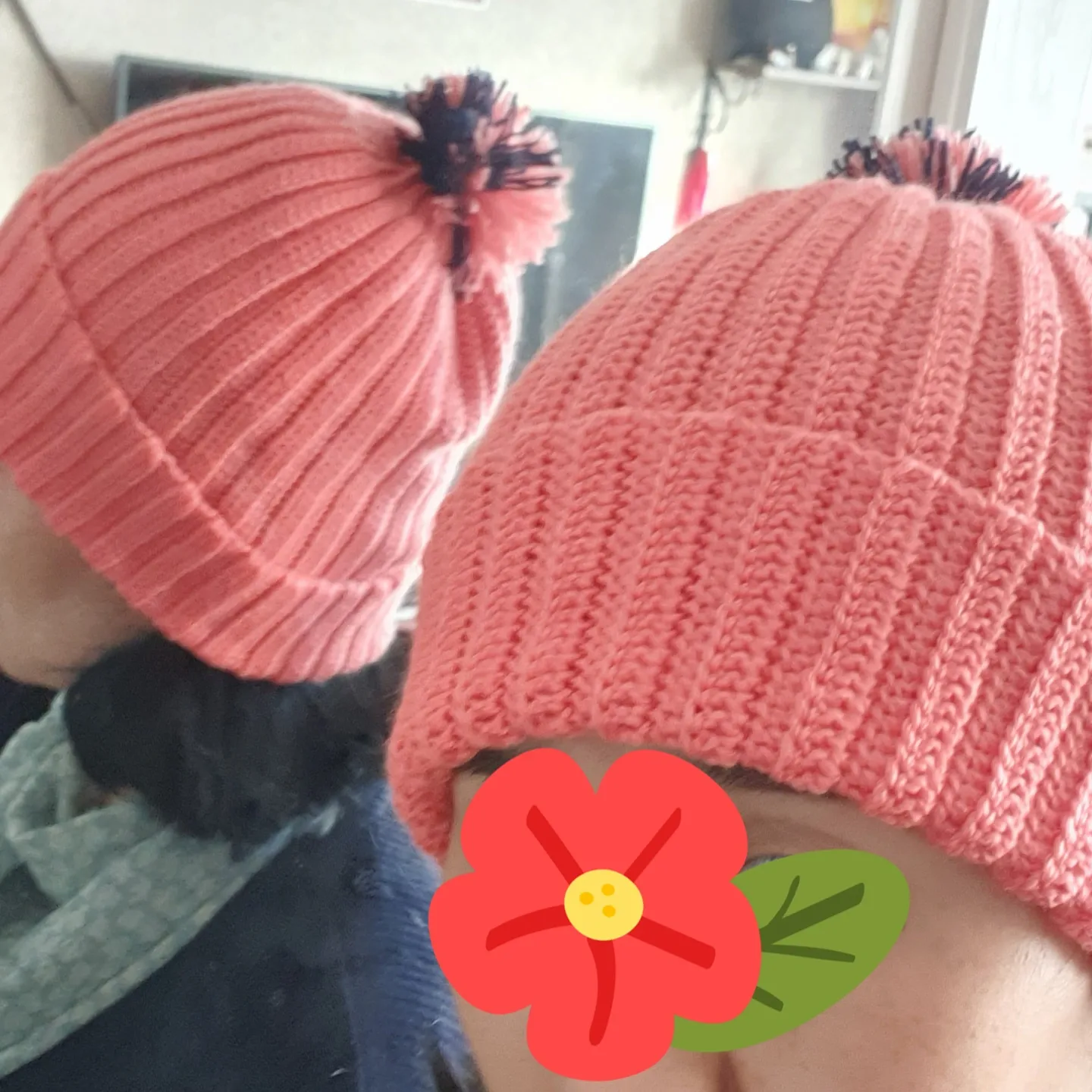 10코정도 짧은뜨기, 그외는 한길긴뜨기머리둘레만큼 뜨고 이어준 다음뒤집어서 짧은뜨기쪽을 오무려 준다.포인트로 어설픈 폼폼 달기.더 풍성하게 했어야 했는데 아쉽네.