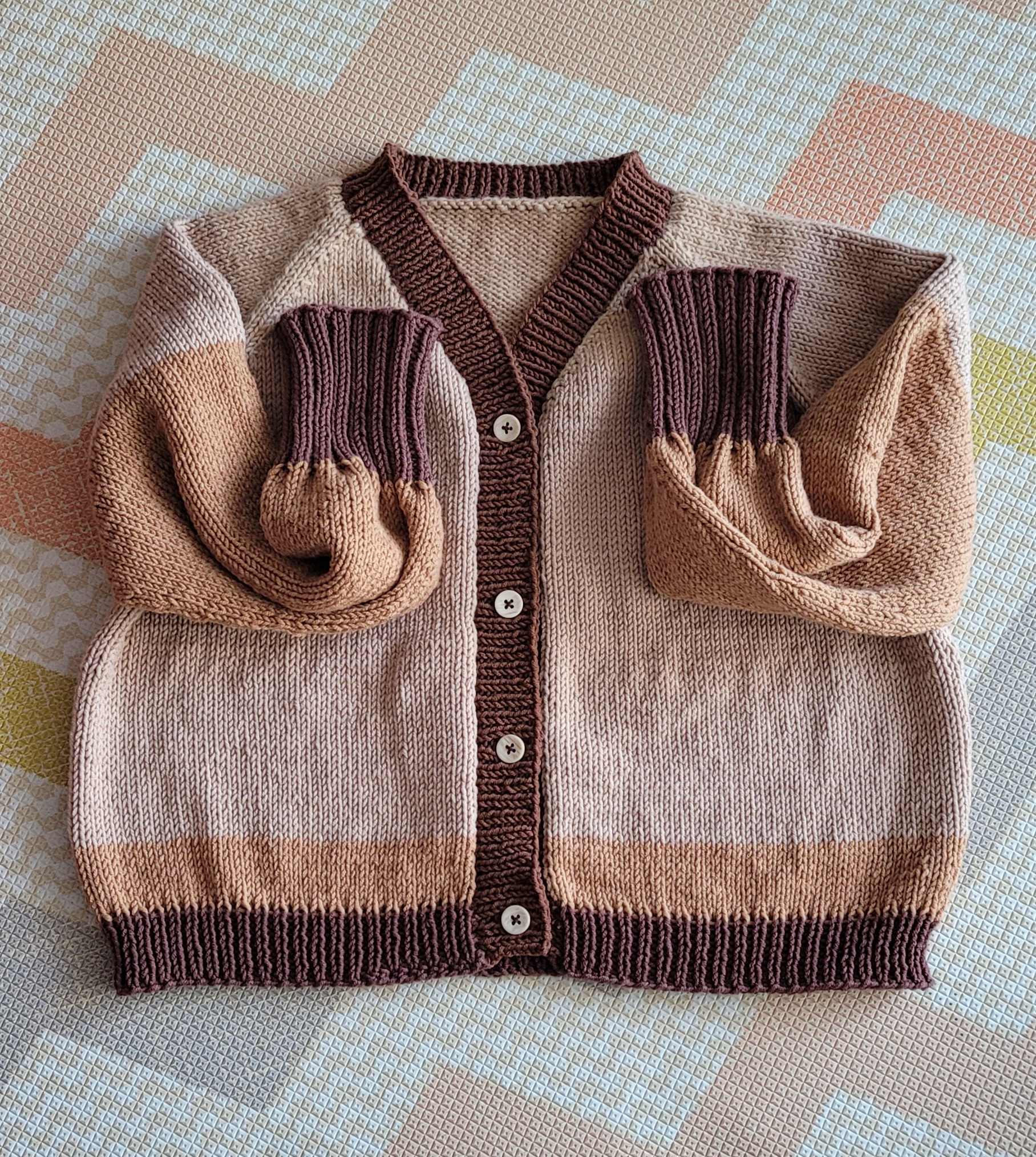 소매 부분은 실 두 볼로 떴는데 뭔가 애한테 딱 맞아서 이번엔 고무단을 길게 떴다.