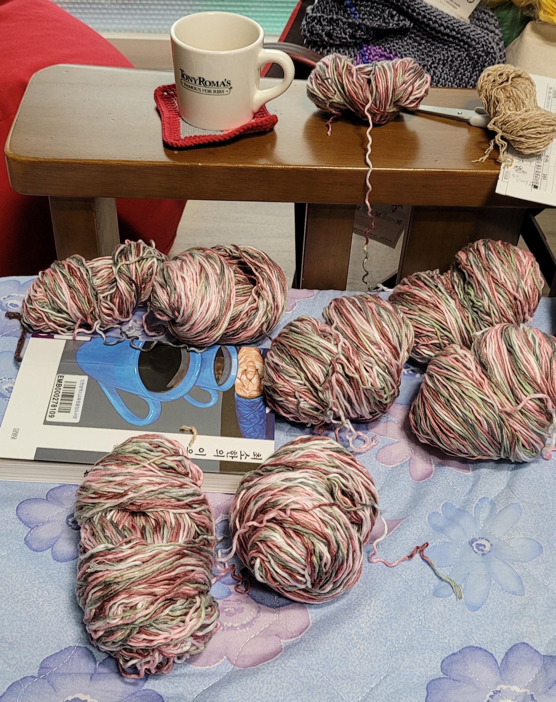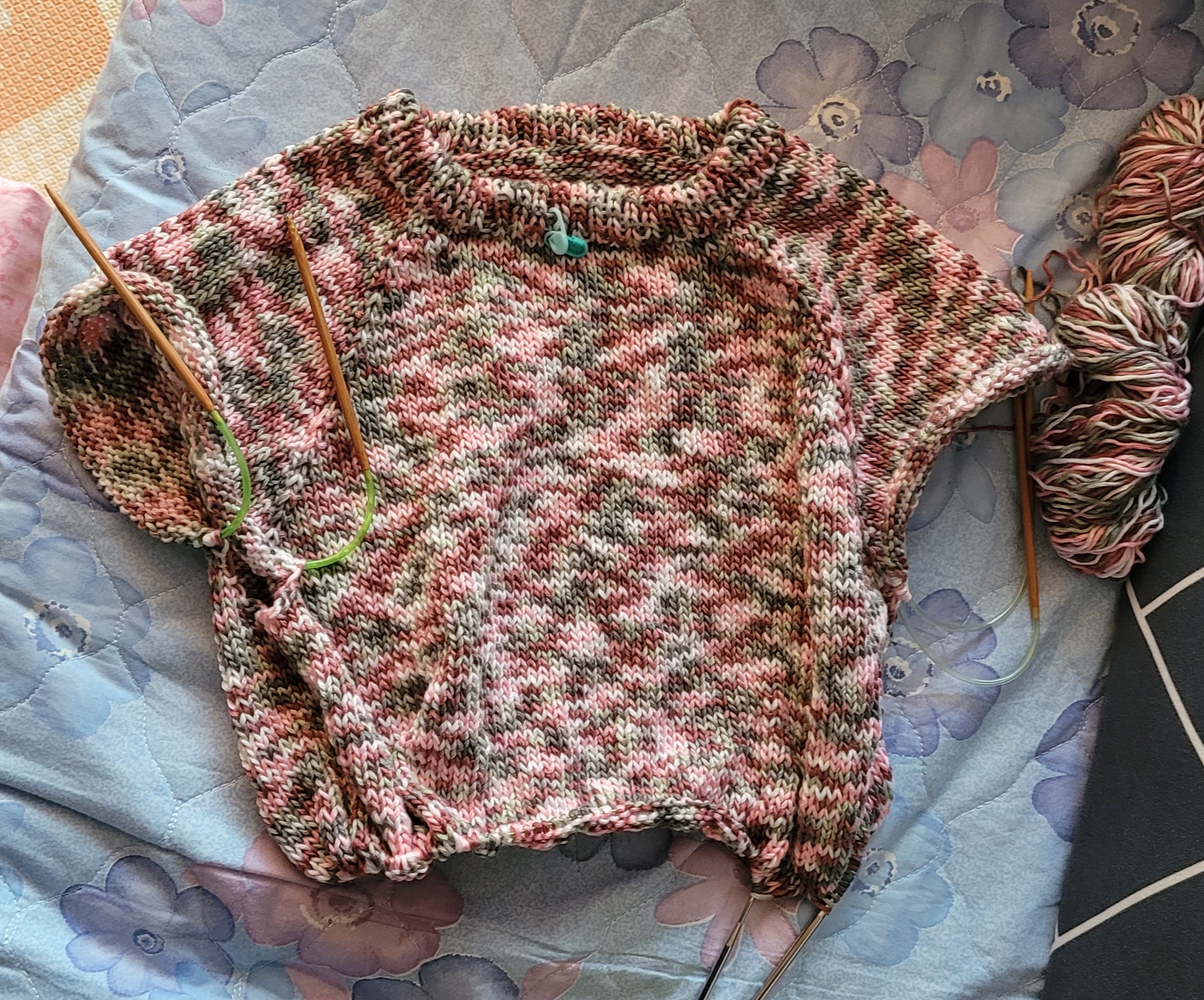예전에 코바늘로 떴던 걸 풀어서 대바늘로 다시 떴다.