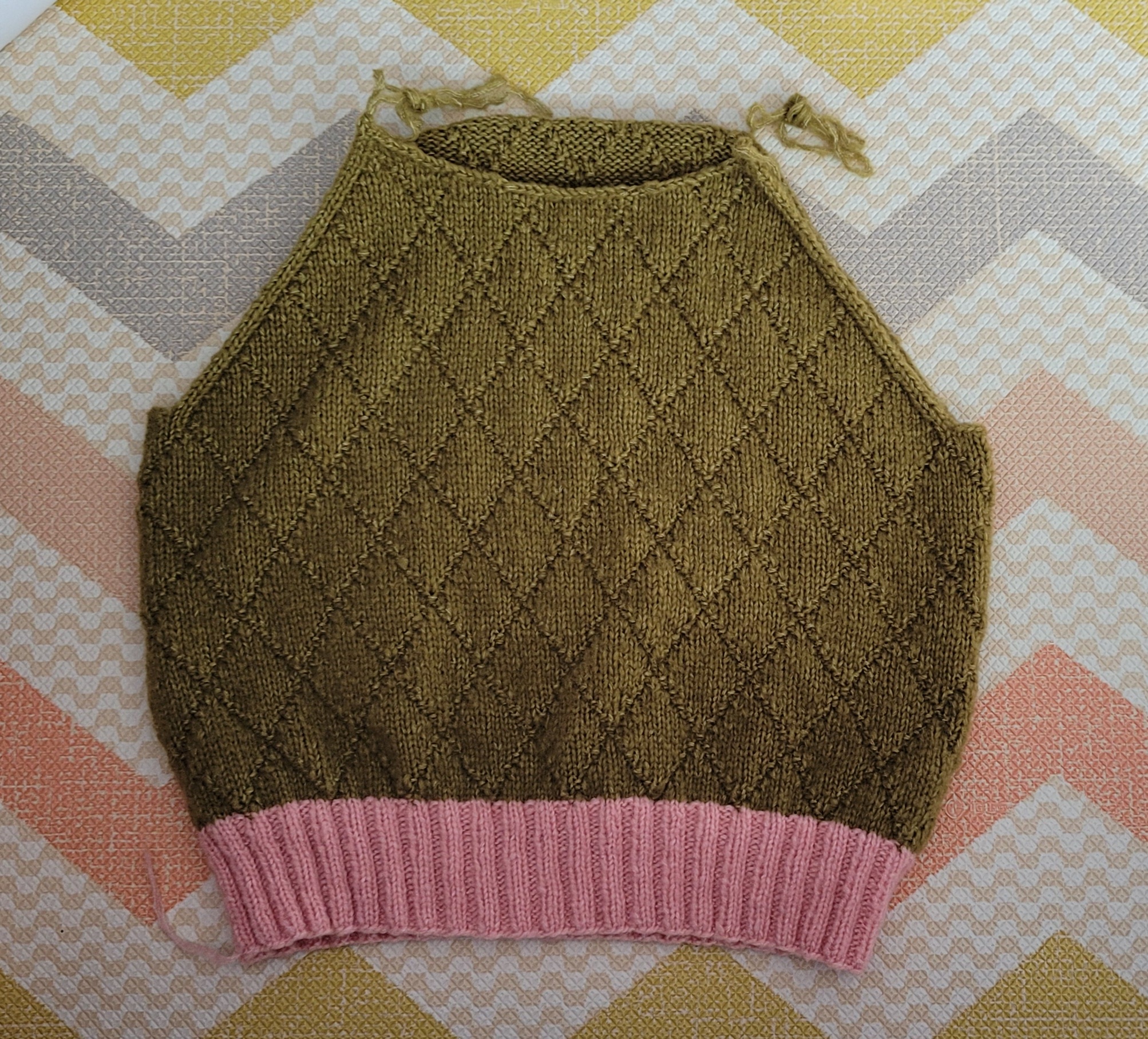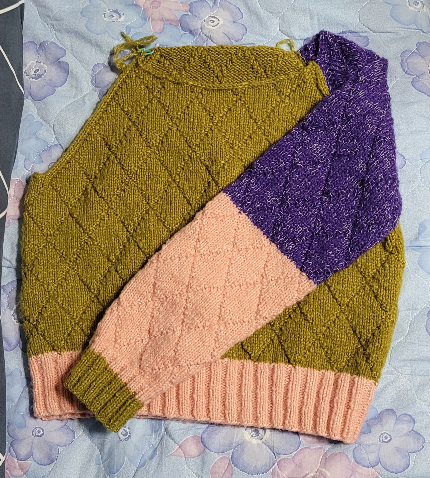 중간에 여행도 다녀왔고 시댁도 다녀와서 4일정도 빠지고 앞뒤판 분리하고 뒤판 완성하고 앞판 어느정도 뜨다 다시 원점으로 되돌아간 것도 있으니 빠듯하게 2주?