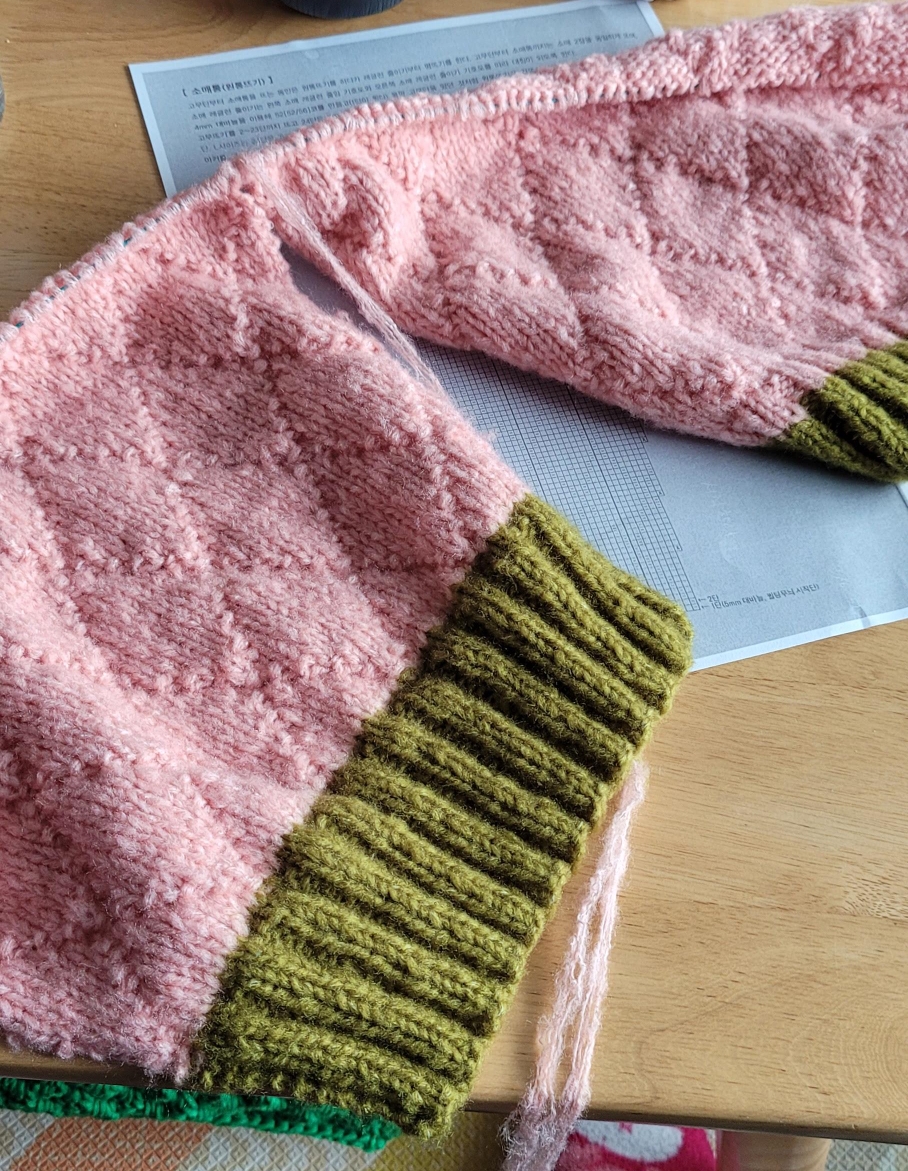 2코 고무단을 돗바늘로 처음 마무리해봤는데 쫙쫙 늘어나질 않는다. ㅋ