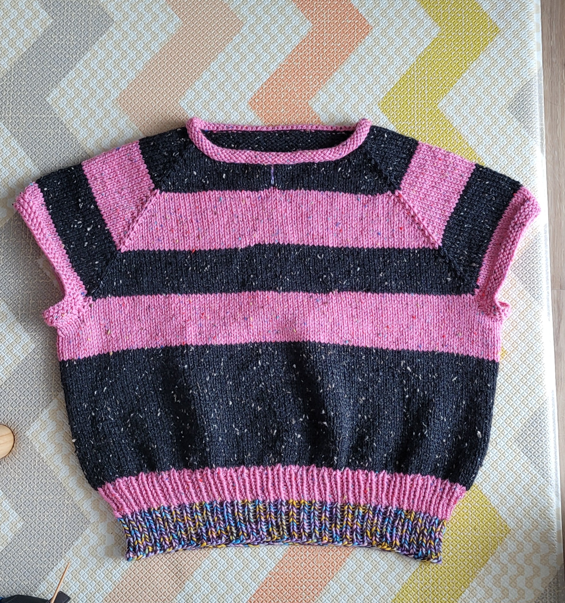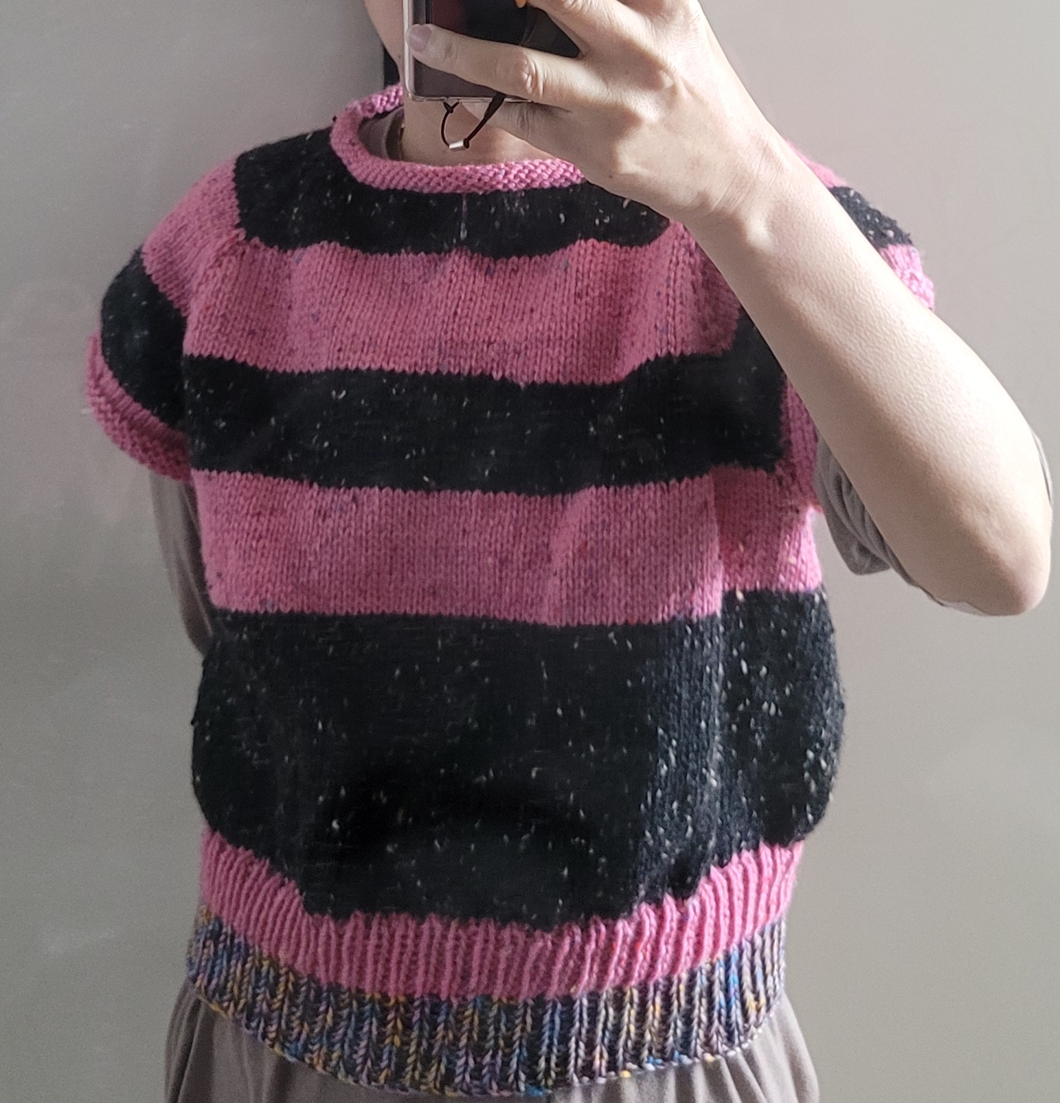 소매는 나그랑 기준 15코는 겉뜨기, 2코에 하나씩 줄이다 쭉 겉뜨기, 가터로 마무리