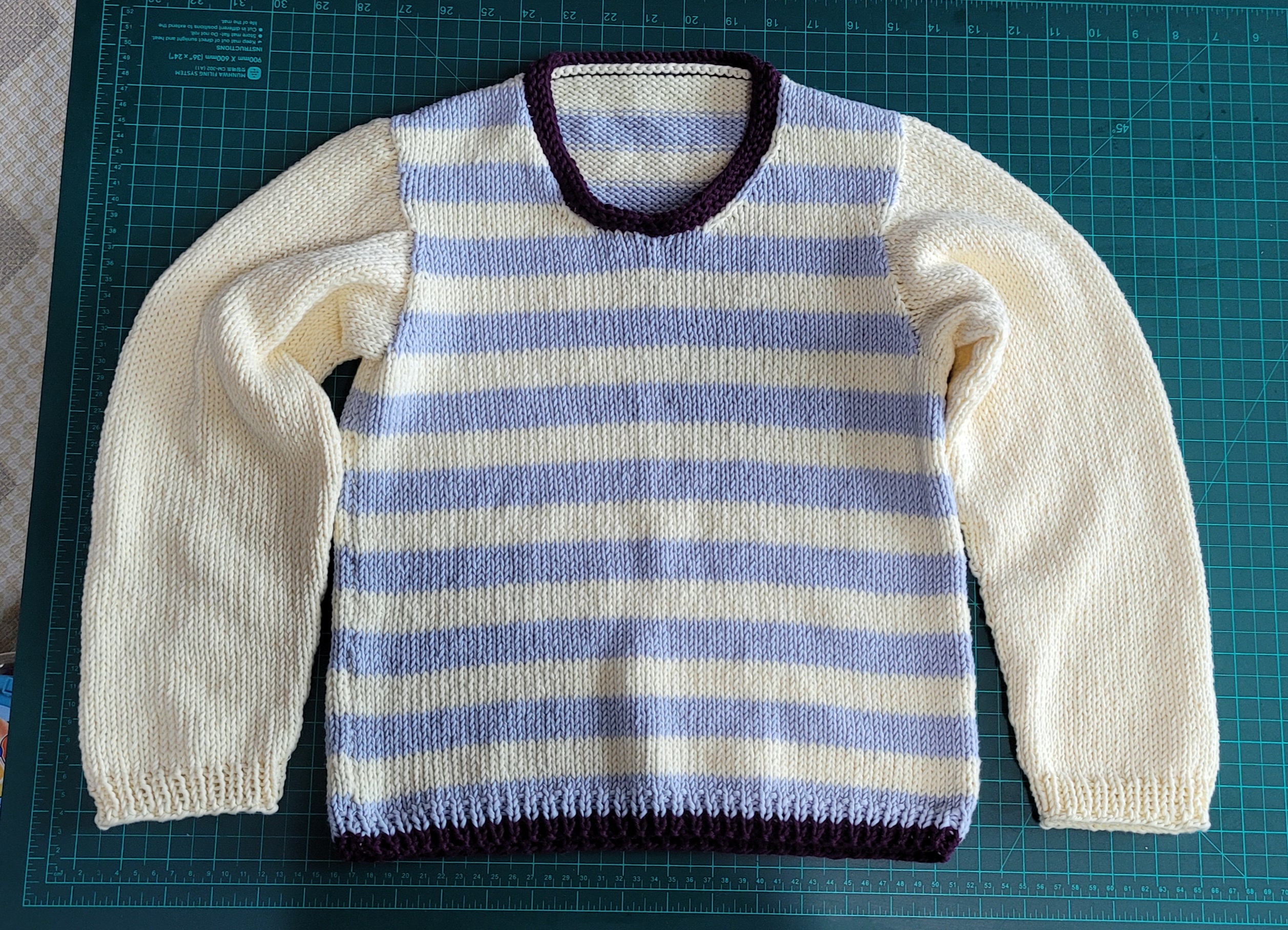 원작은 소매가 꽈배기 왕창인데 소매산 쪽이 몸체와 맞지 않아서 걍 다 풀고 셋인슬리브로 소매를 떠줬다. 꽈배기와 코늘림을 동시에 처리하기엔 머리아플것 같아서 메리야스로 완결
