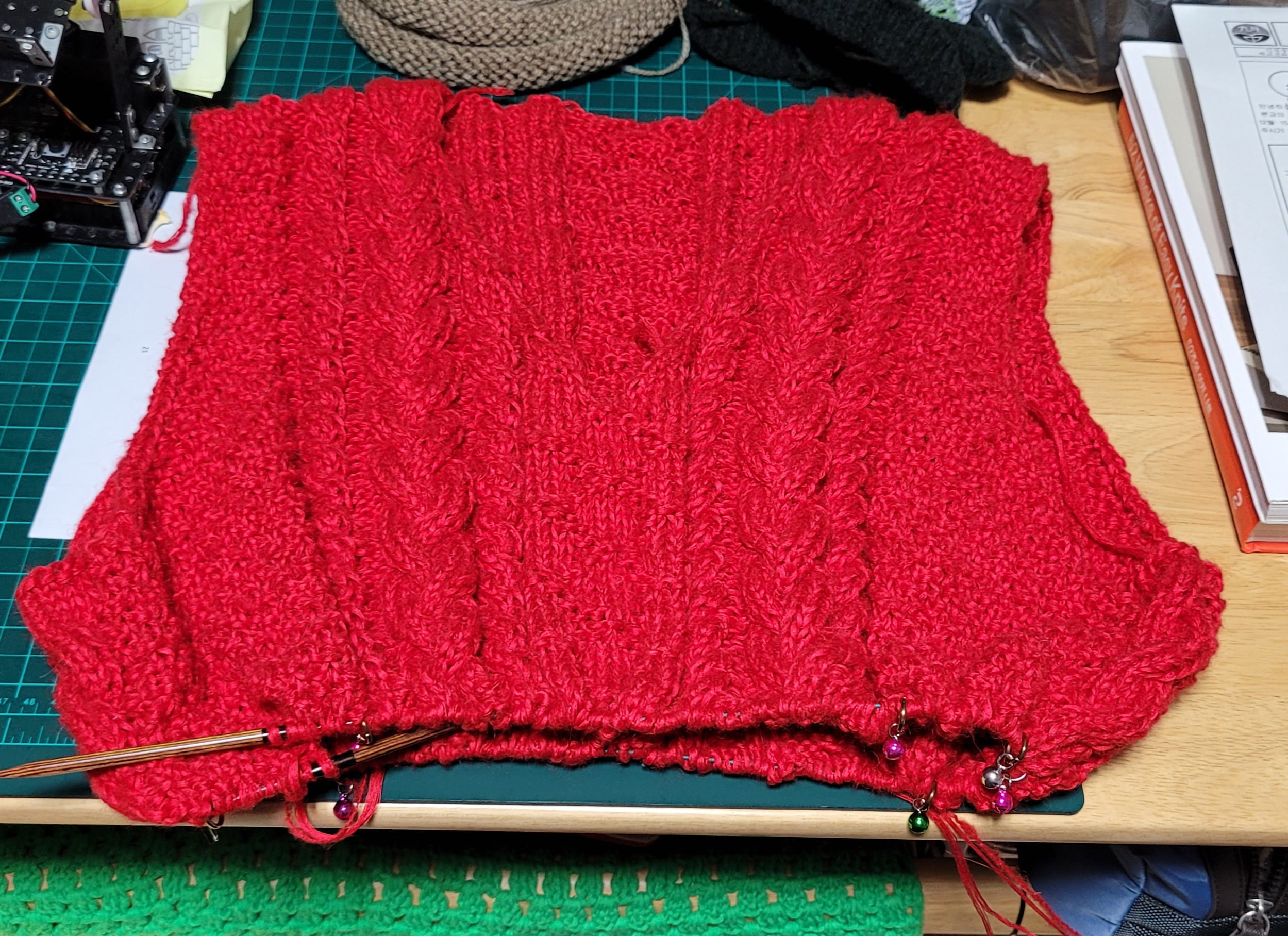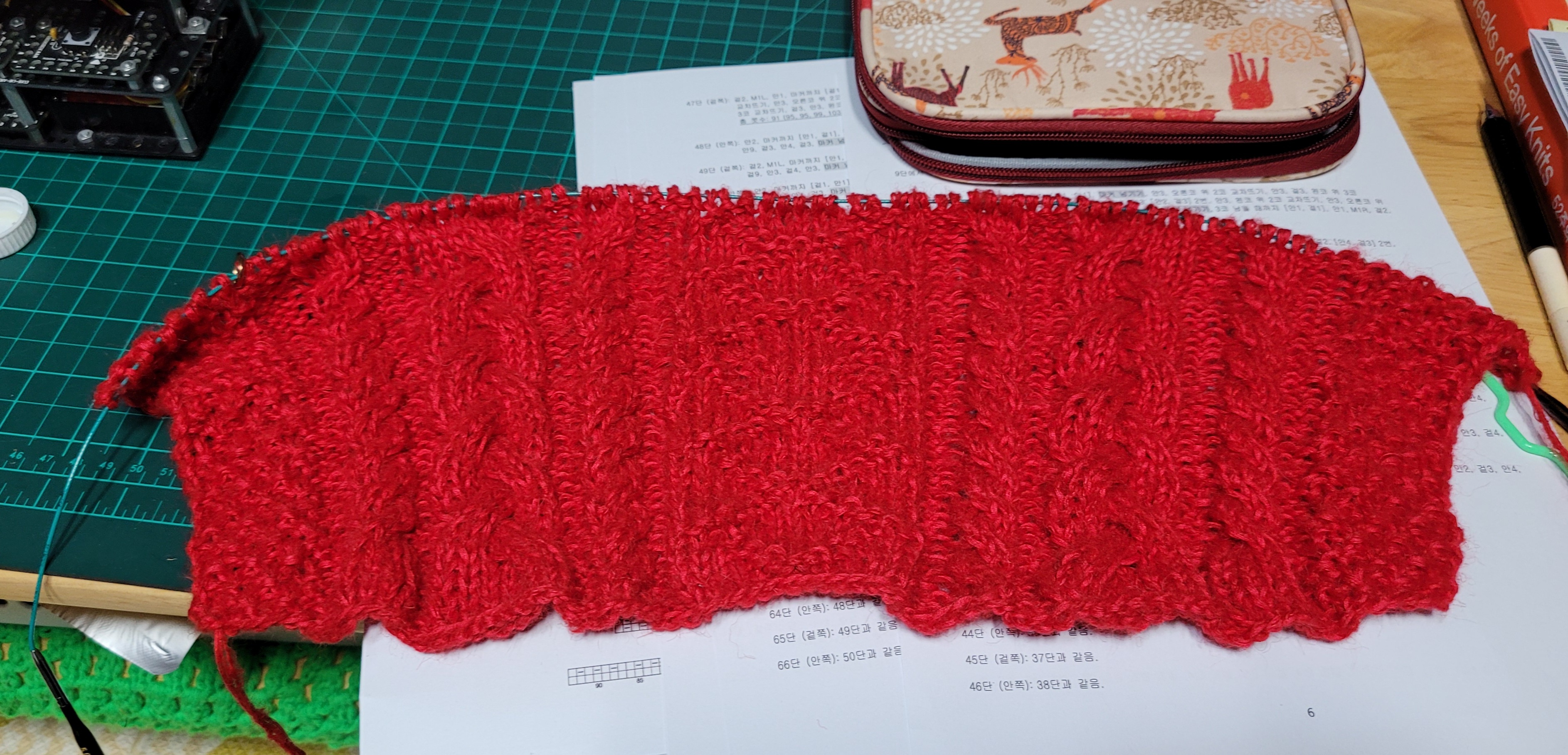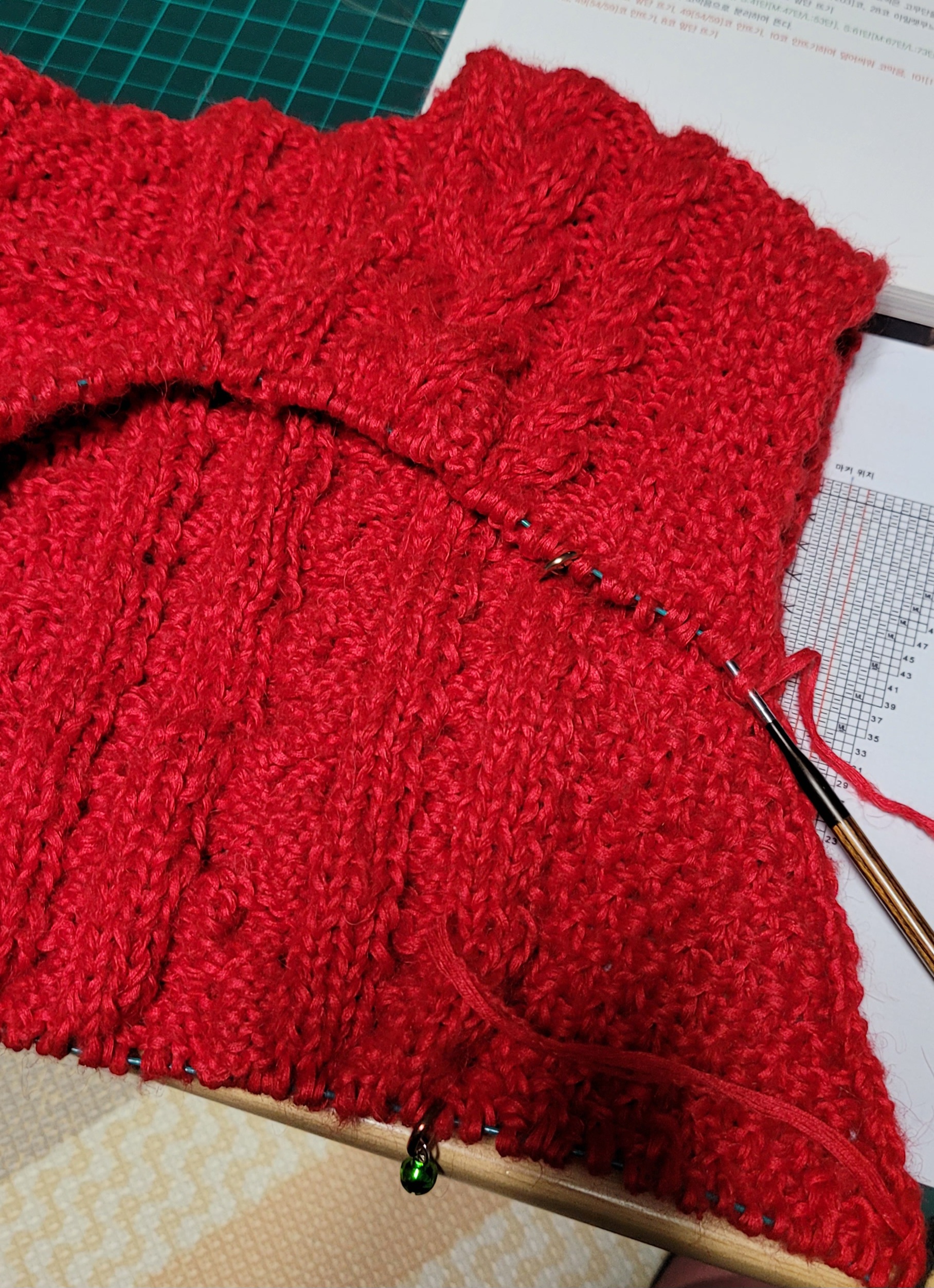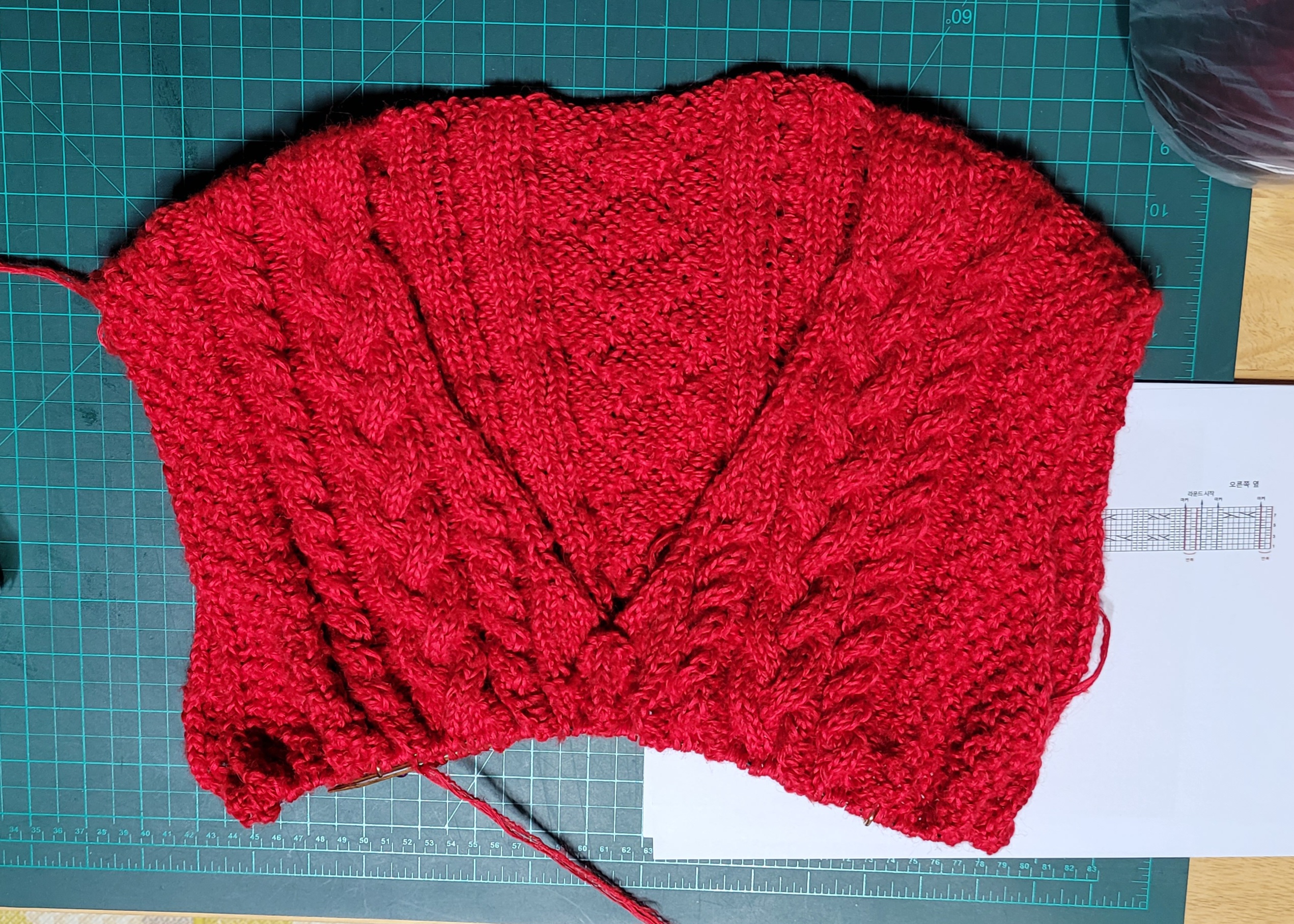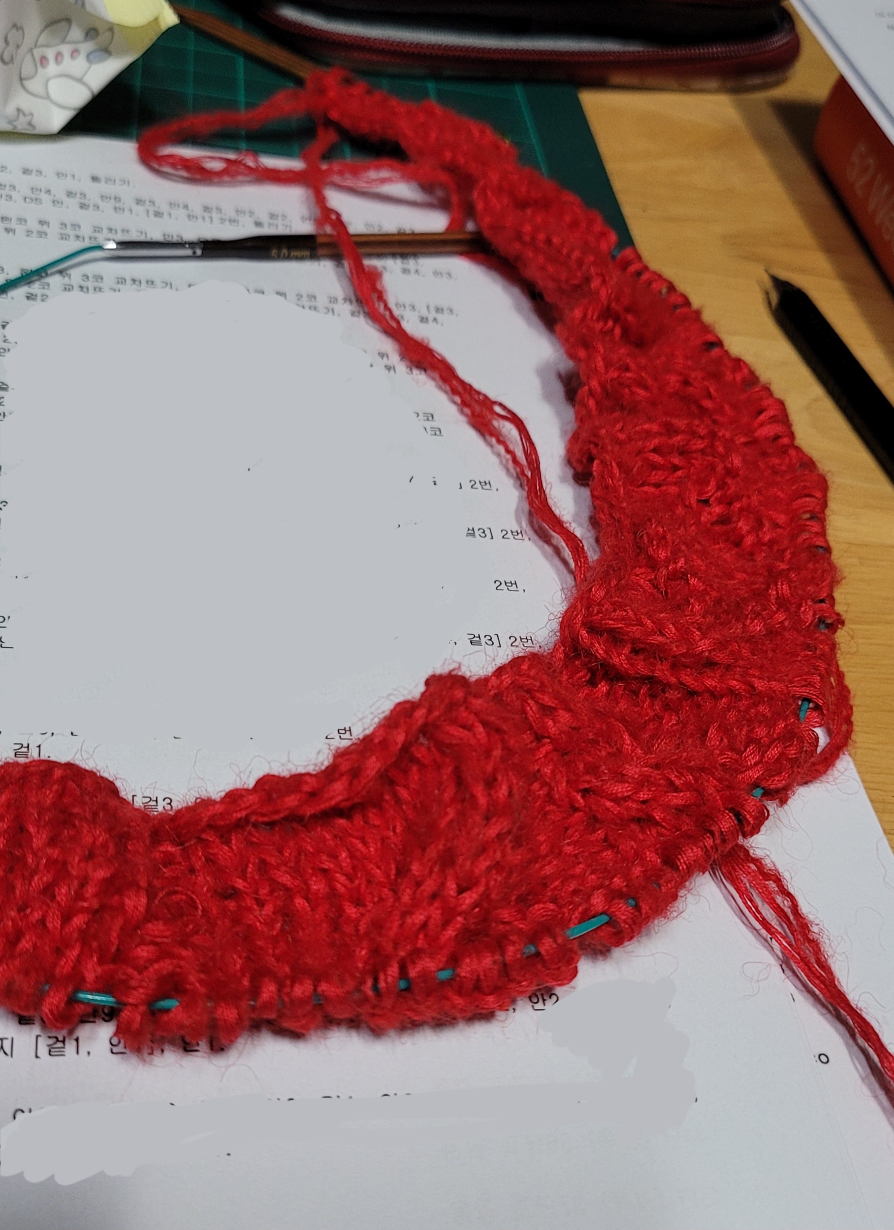 첨엔 모헤어1에 집실2합으로 했다가 통통함이 덜하길래 그간 뜬거 다 풀고 한겹 더해서 다시 뜬거임.
