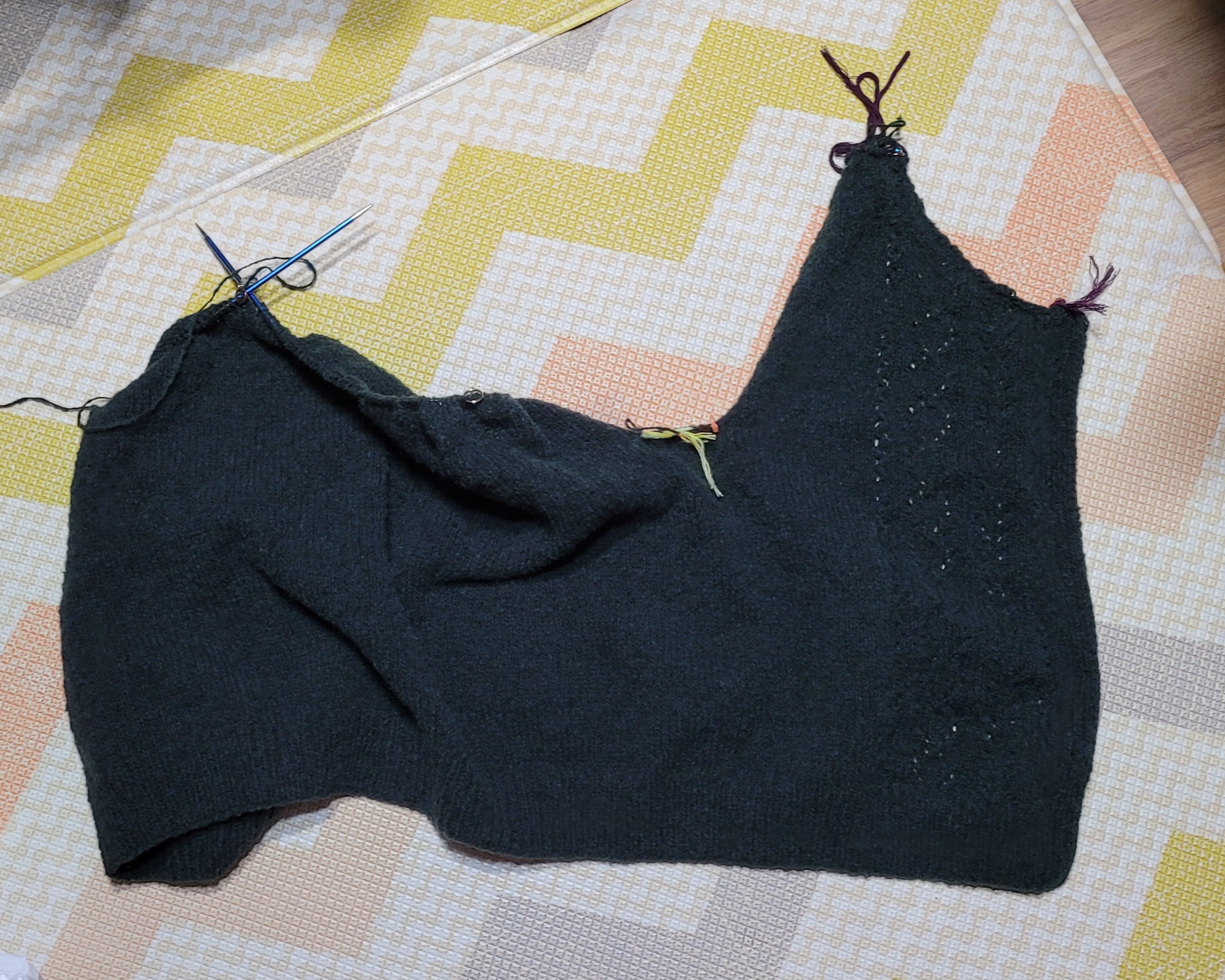 팔은 내 팔길이에 맞춰서 10단마다 줄여으서 떴다.