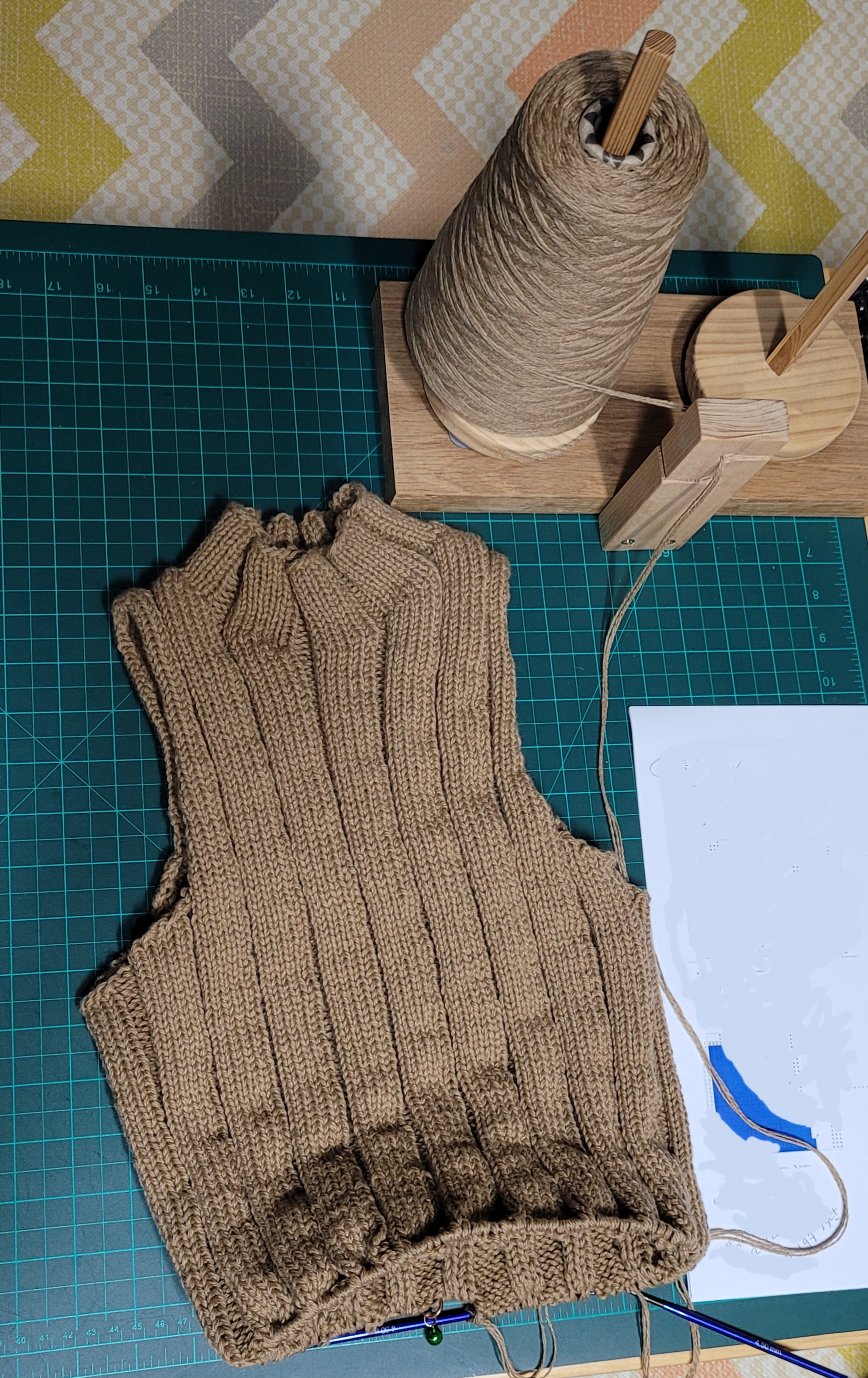 완전 초보자분들보다는 경사뜨기나 탑다운의류의 이해가 어느정도 있으신 분들이 시작하시는 것을 추천합니다. 고무단 무늬가 이어지는 것도 신경써야해요.