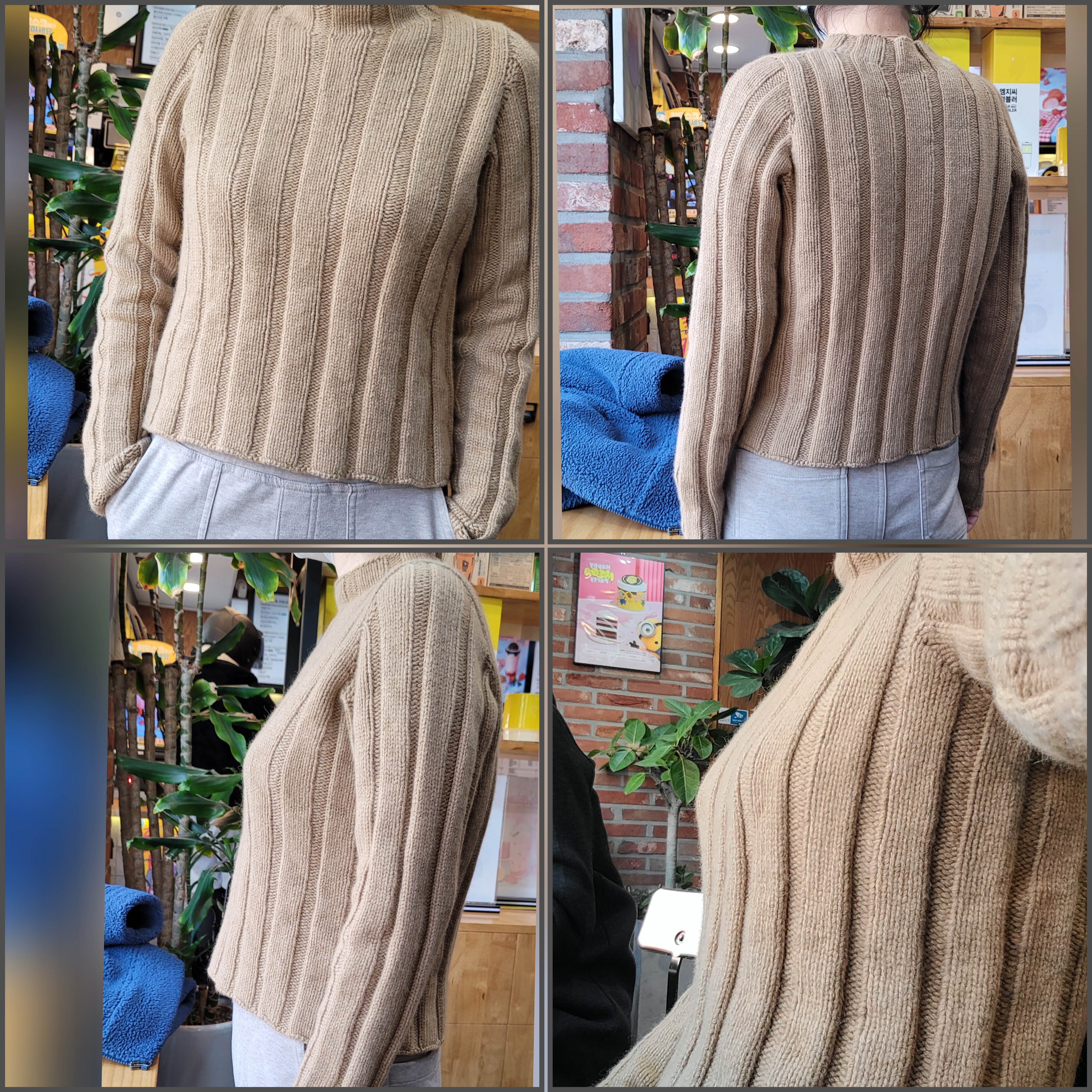 색상도 정말 다양해서 처음에 실 고르는데 시간을 많이 들였어요. 이곳저곳에 입을 수 있는 색을 고른다고 카멜베이지를 픽했는데 가을가을해서 가을부터 겨울에 아주 딱일 것 같아요. 다른 분들은 화사하거나 아주 다크한 색을 고르셨는데, 솔직히 남의 떡은 역시 좋아보이데요. 그래도 제 선택 나쁘지 앉아요. 세뇌세뇌.