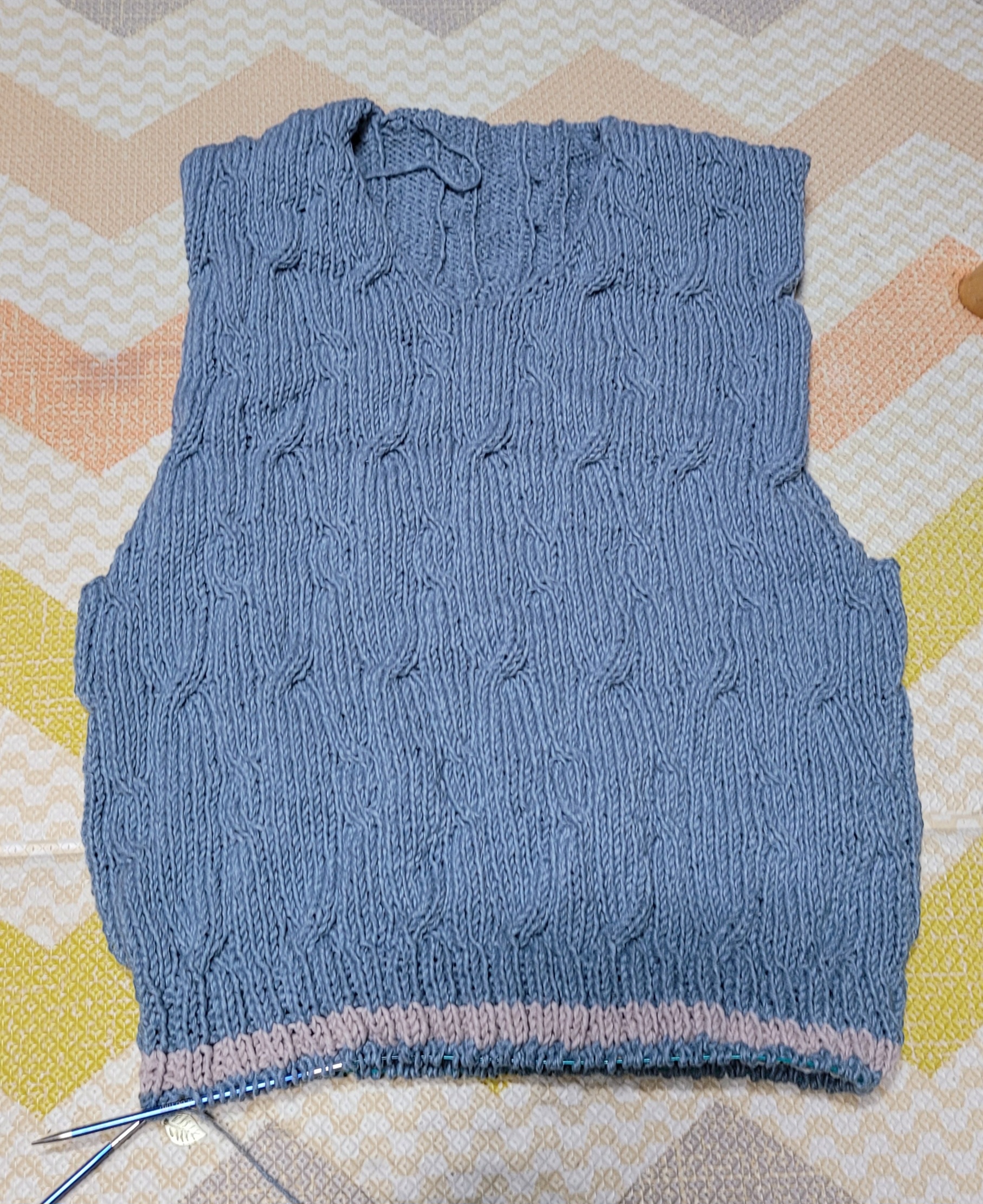 다음에 또 뜨게 된다면 가벼운 실로 암홀은 줄여서 하고 싶다.