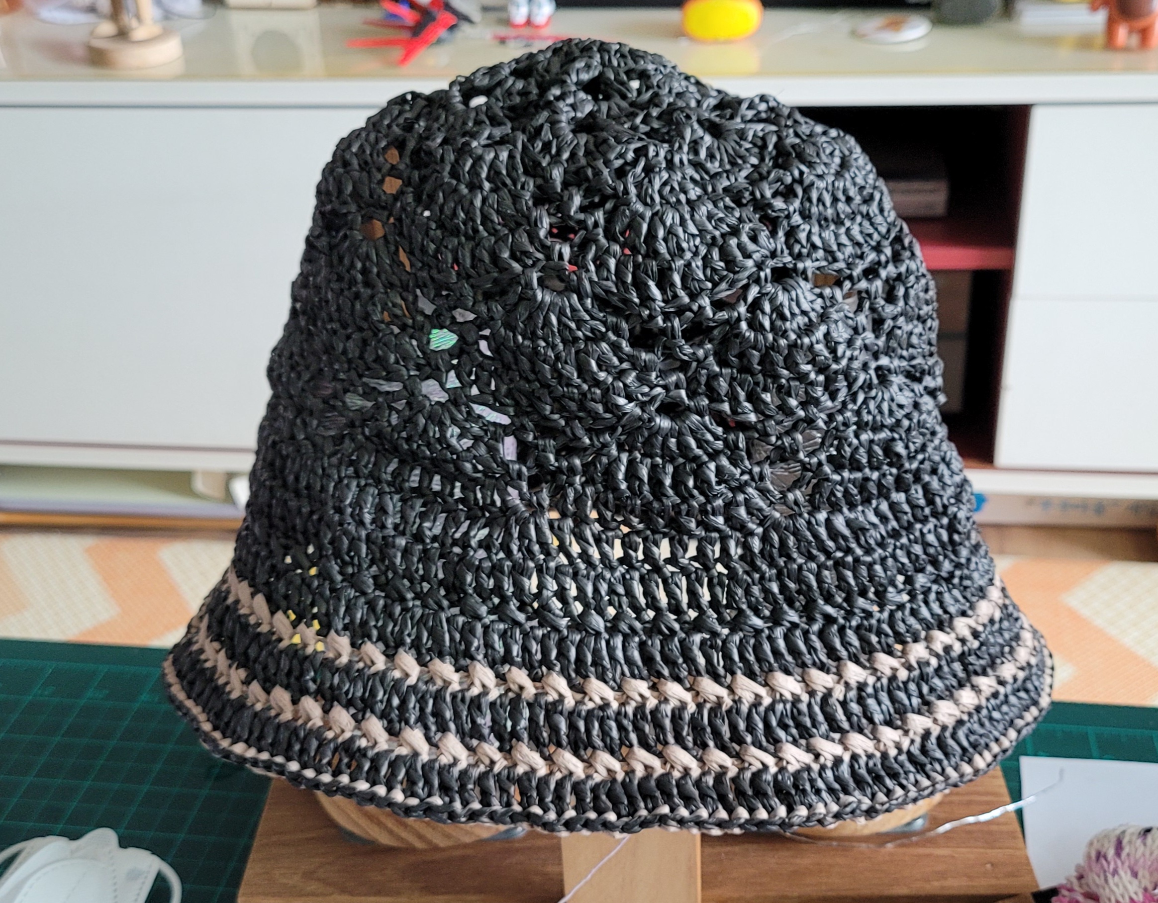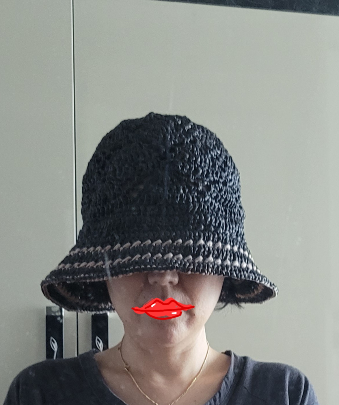 끝부분도 모잘라서 미도리로 5코정도 뜨고 빼뜨기로 테두리 둘러주니 챙이 살아있다.