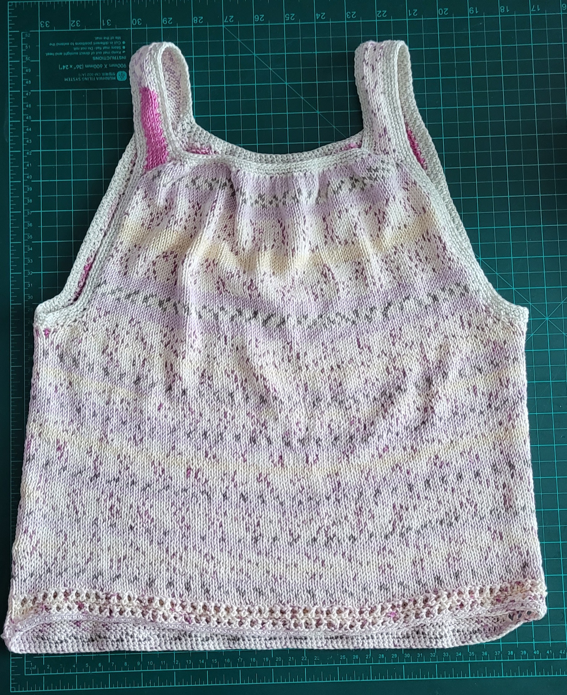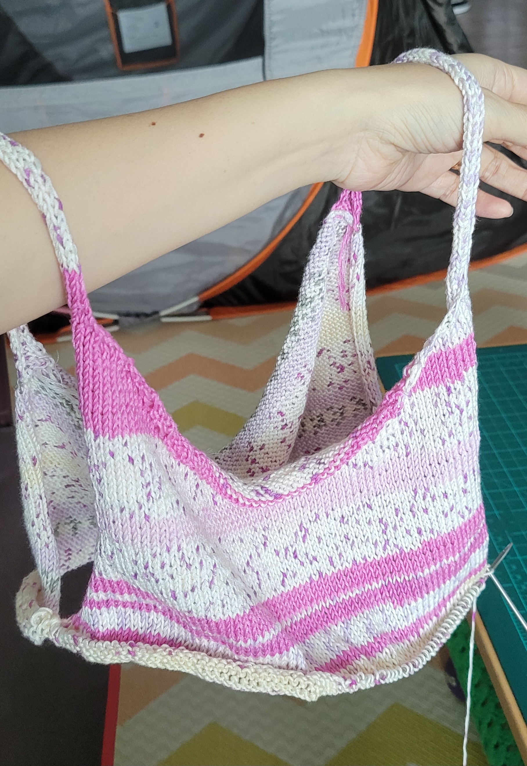 처음 의도는 분홍줄무늬쪽이 앞이었는데 엣지 넣다보니 주름이 더 진 쪽을 앞으로 할 수 밖에 없더라.