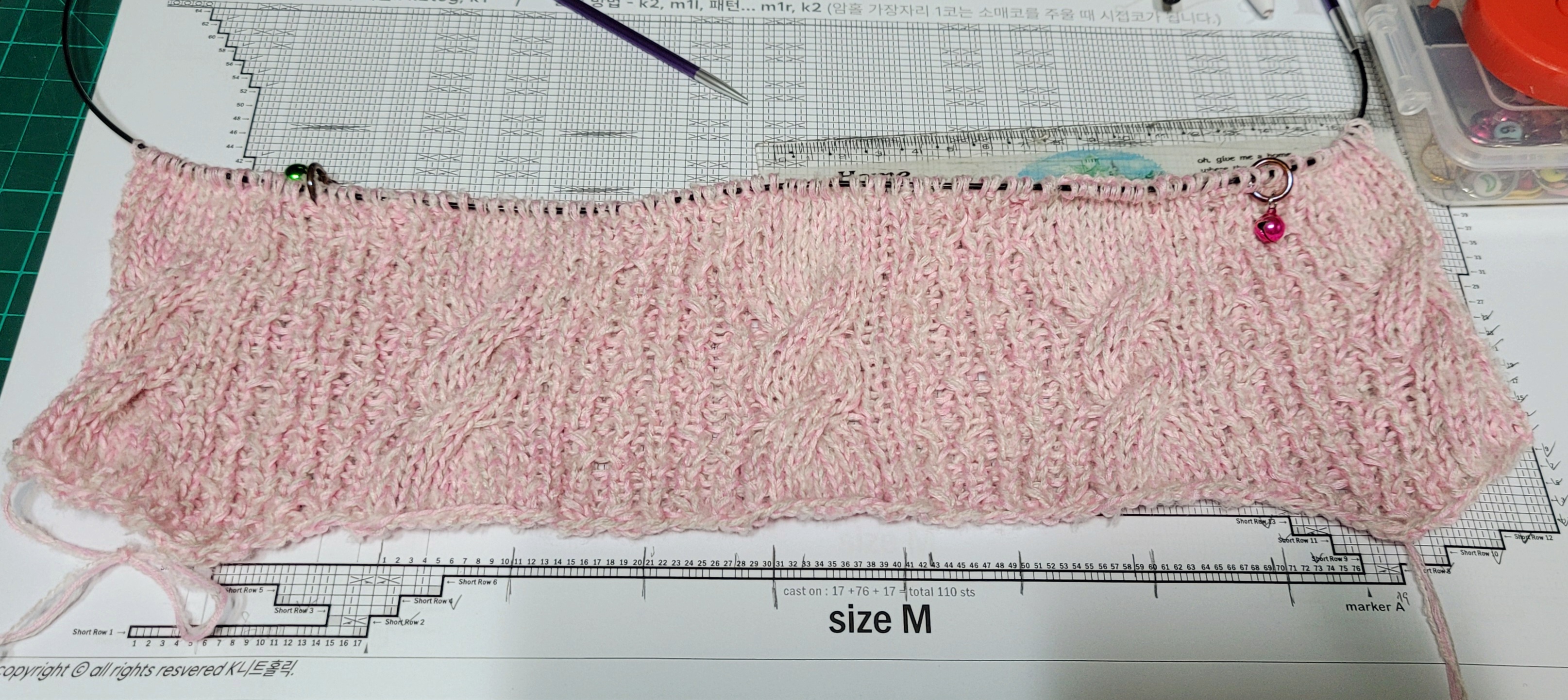 그만큼 편물의 조직이 치밀해서 완성도가 올라가서 좋았지만 노안으로 잘 맞지 않는 초점으로 눈의 피로도도 함께 올라가는 단점이 있었습니다.