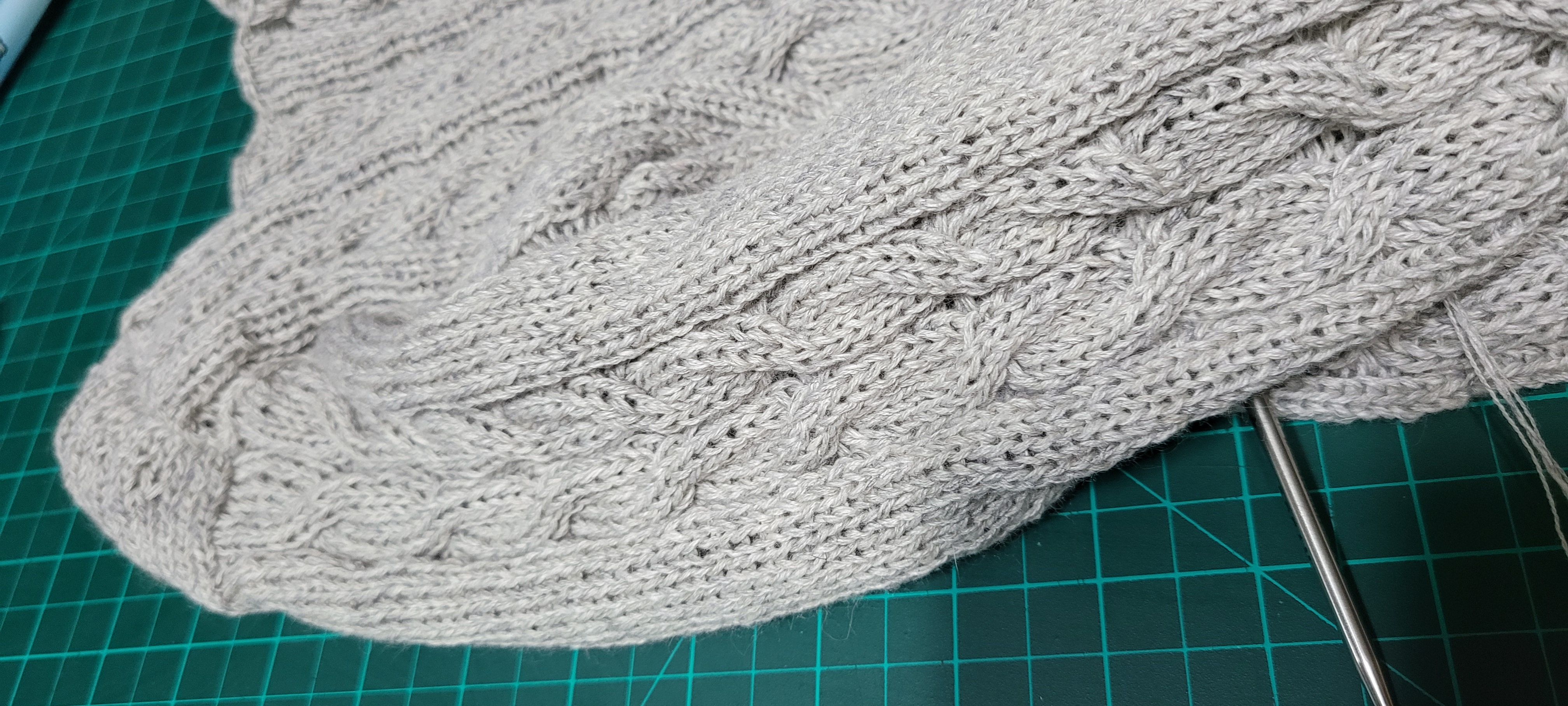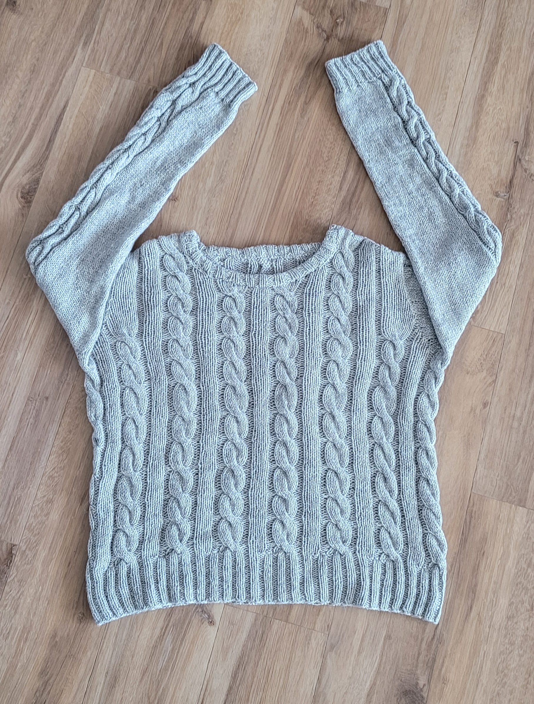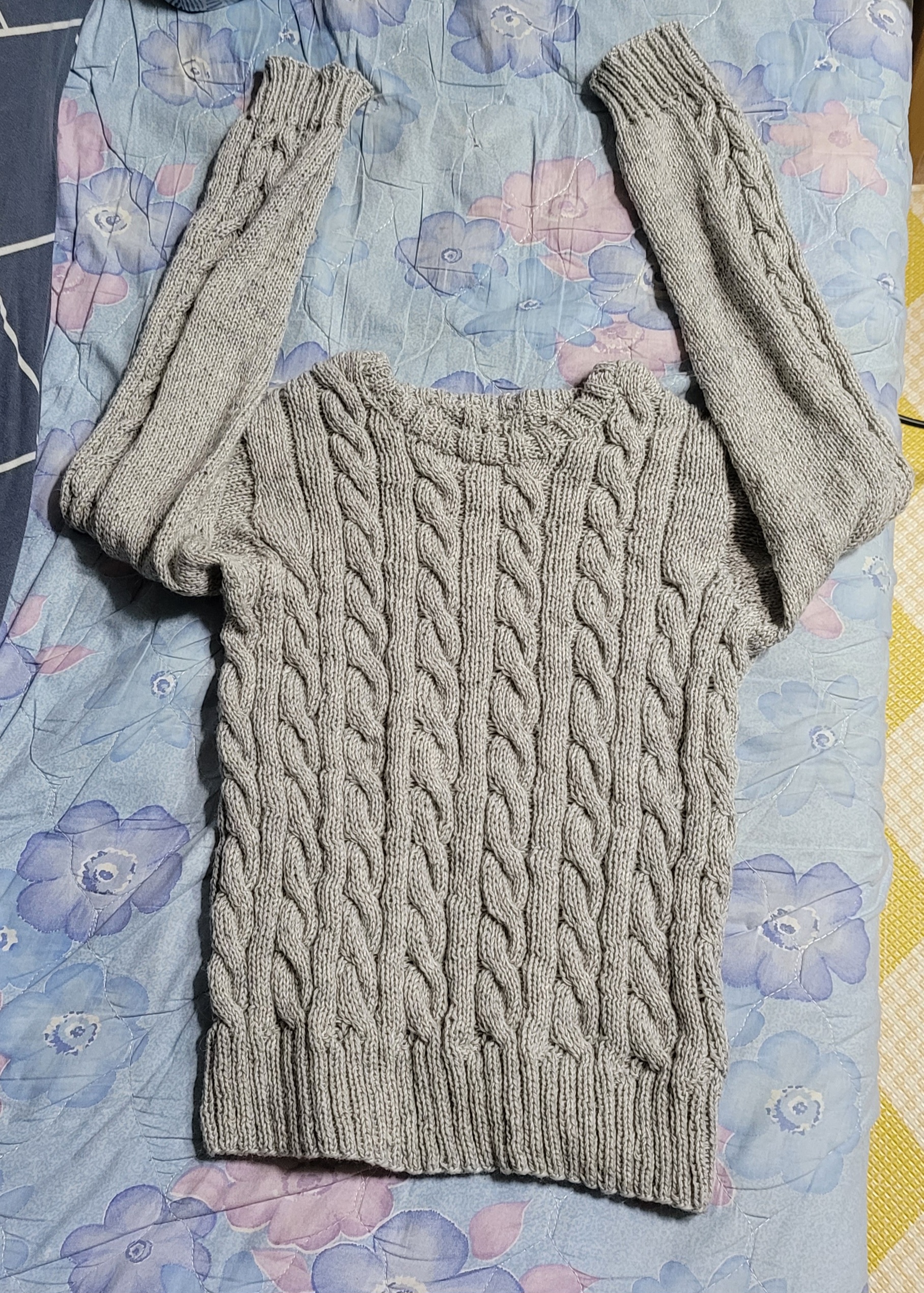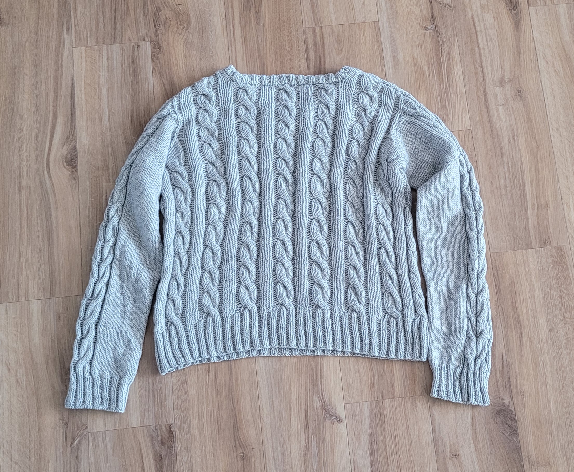 우측 팔 줄임 3코를 제대로 못해서 손목 고무단 들어가면서 급 줄였다.쩝