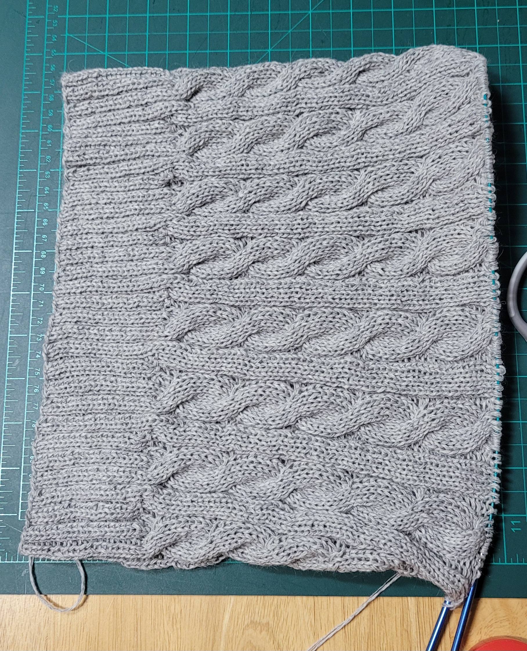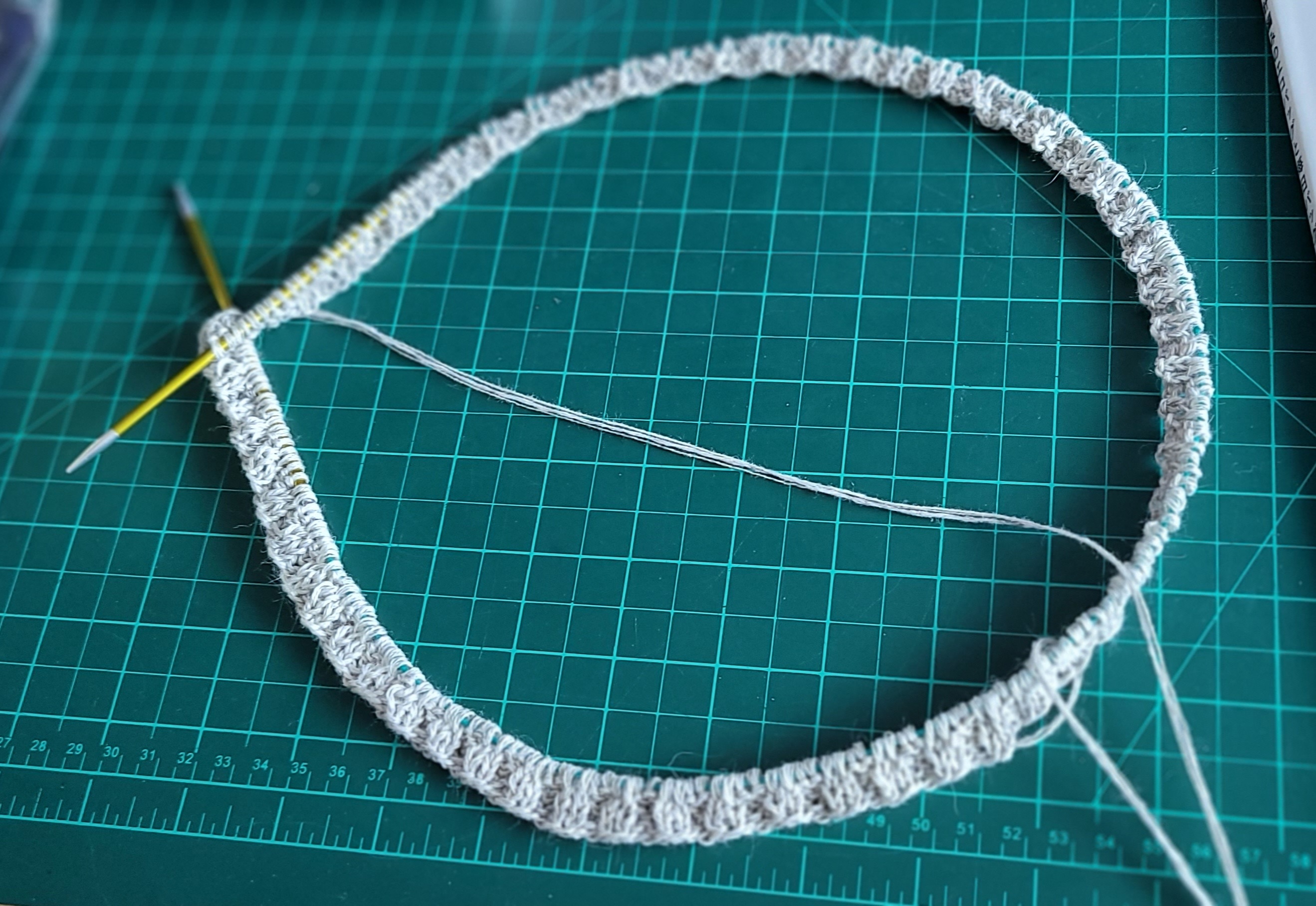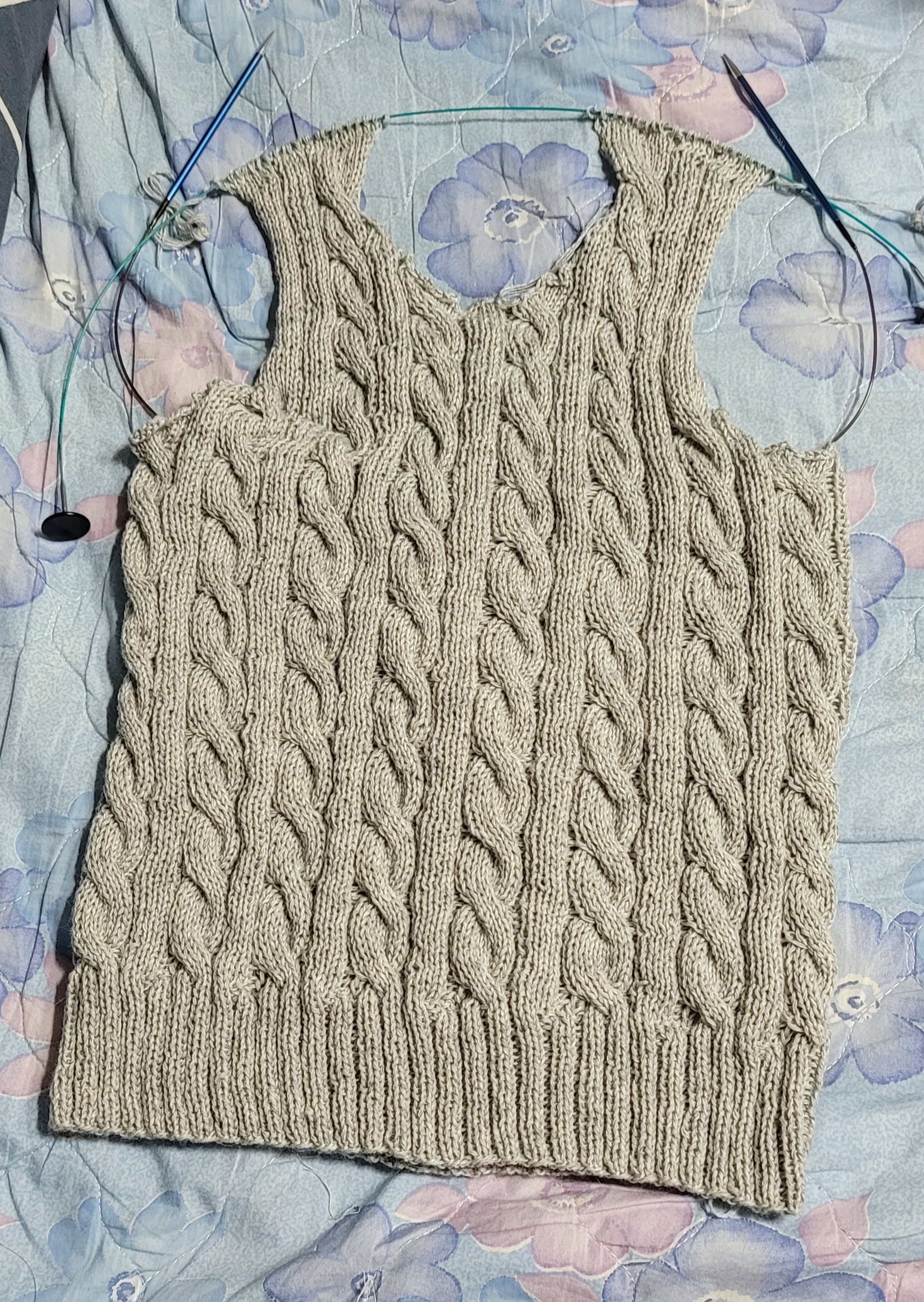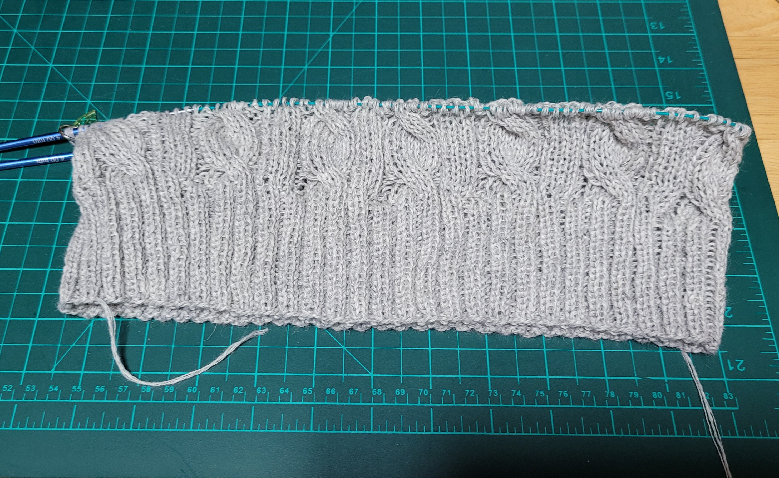 우측 팔 줄임 3코를 제대로 못해서 손목 고무단 들어가면서 급 줄였다.쩝