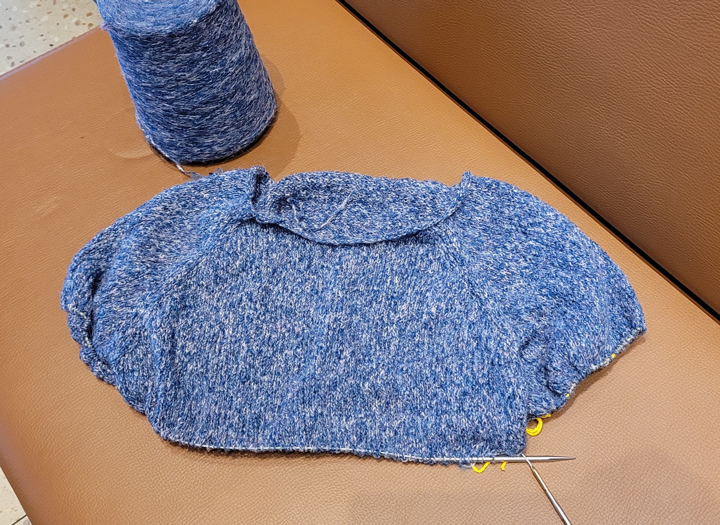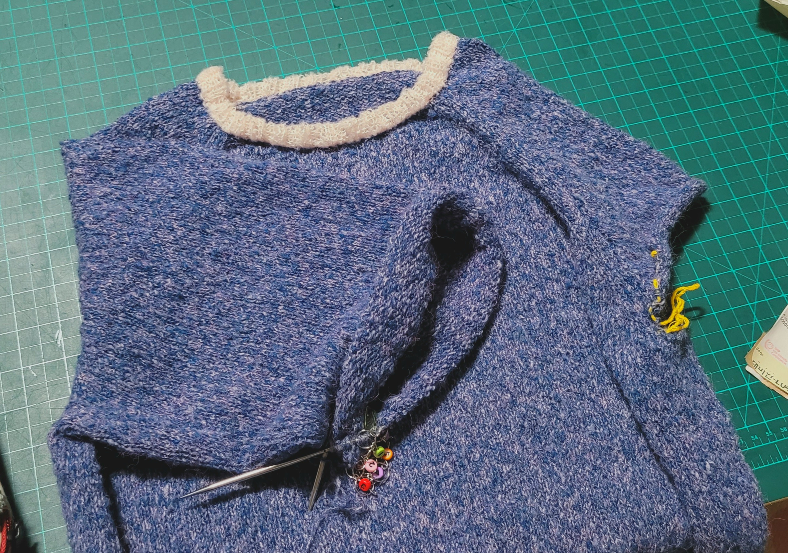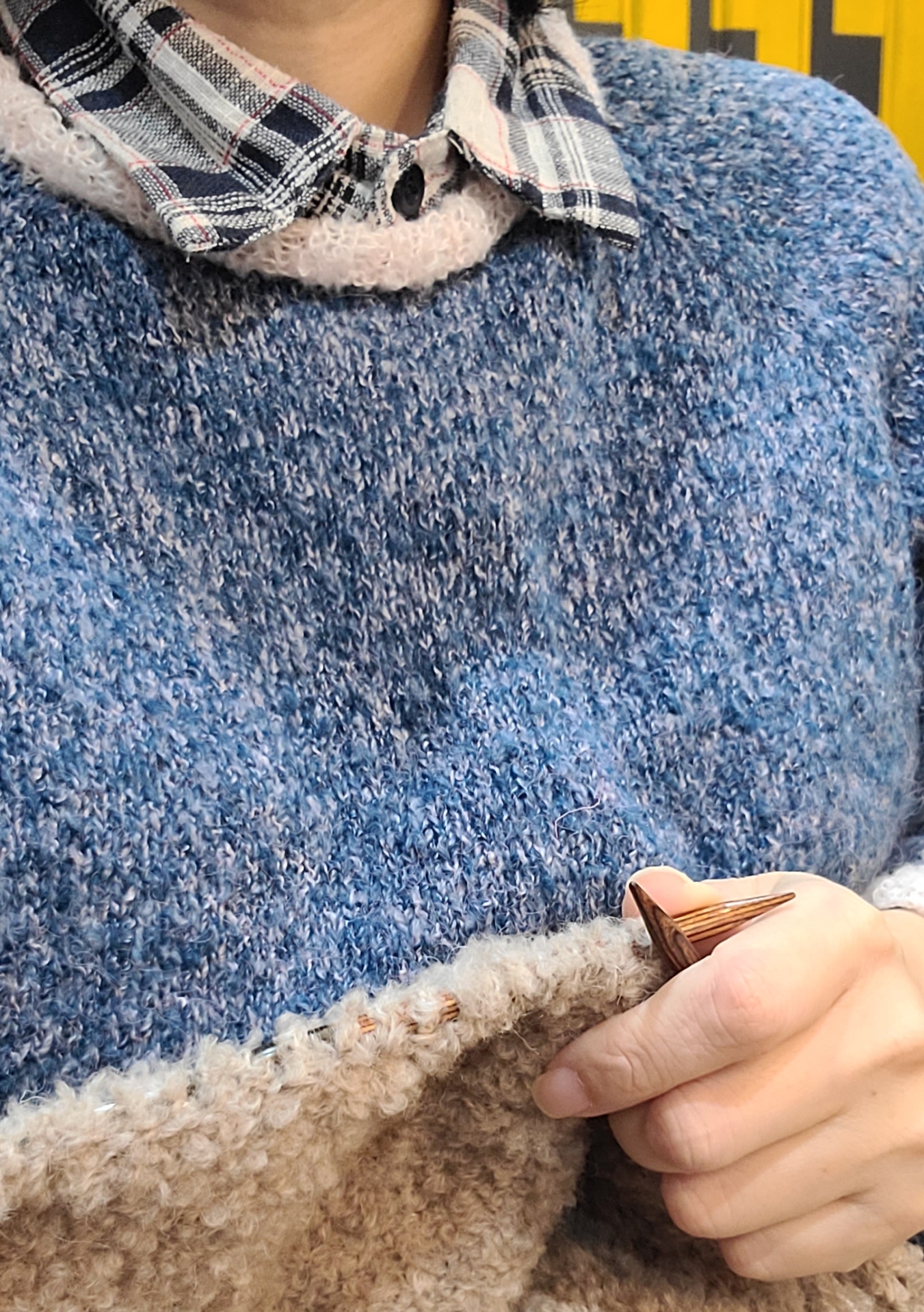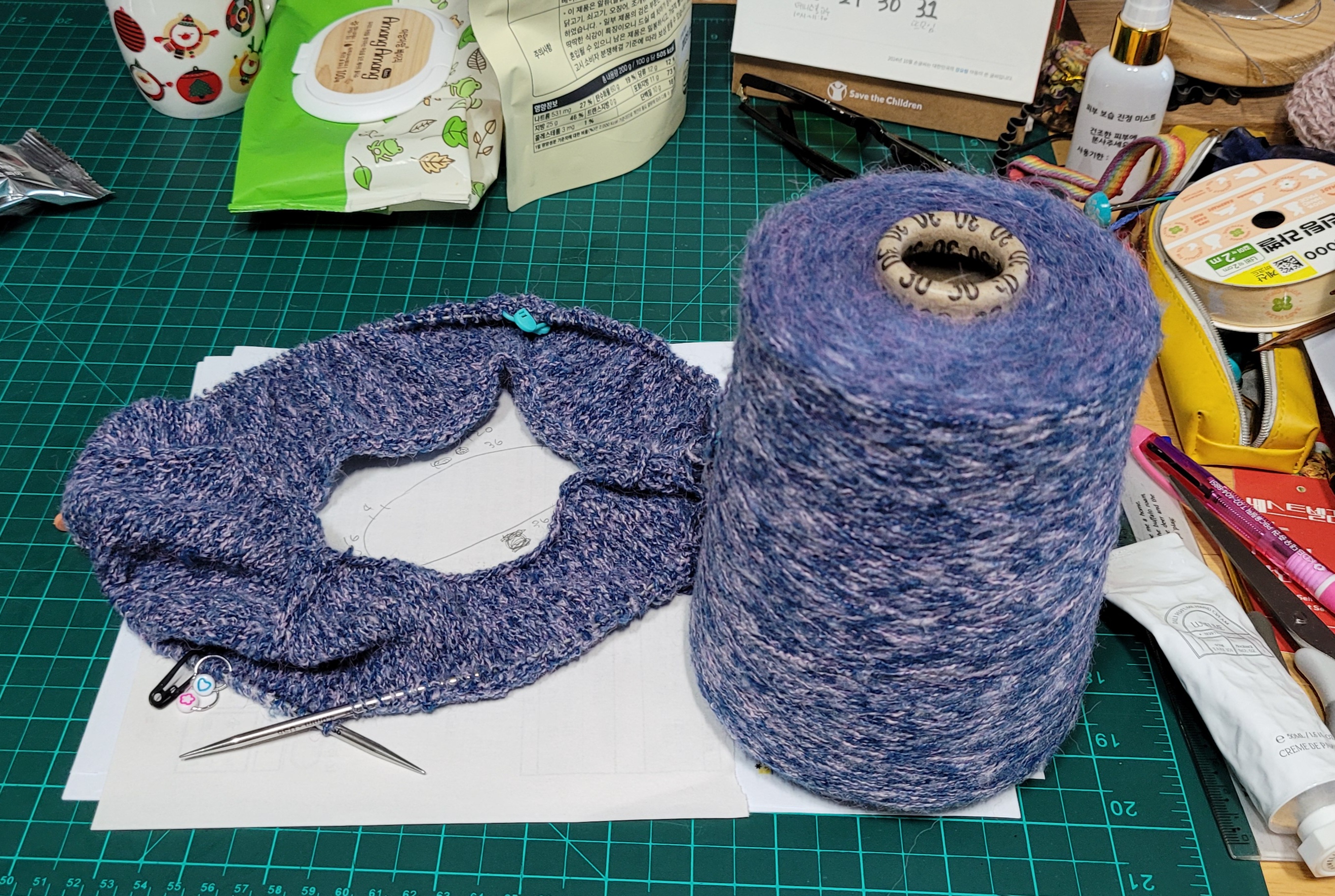 넥과 소매는 최근에 썼던 콘사가 옆에 있어서 그걸로.