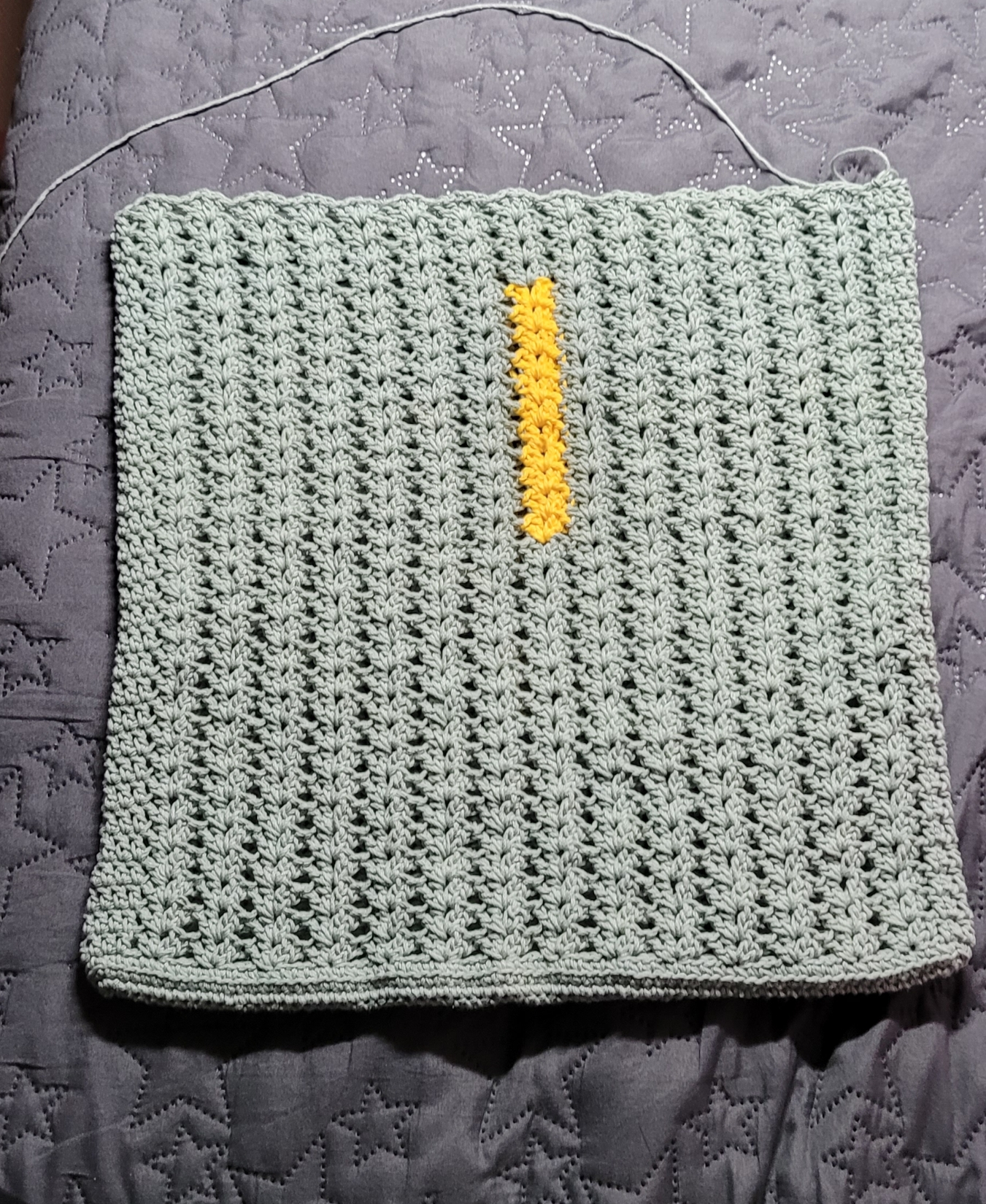 한가지 색으로 뜨기엔 너무 지겨워서 남은 노랑실로 라인을 줬는데 기실, 받는 사람은 별로 안 좋아하는 듯.