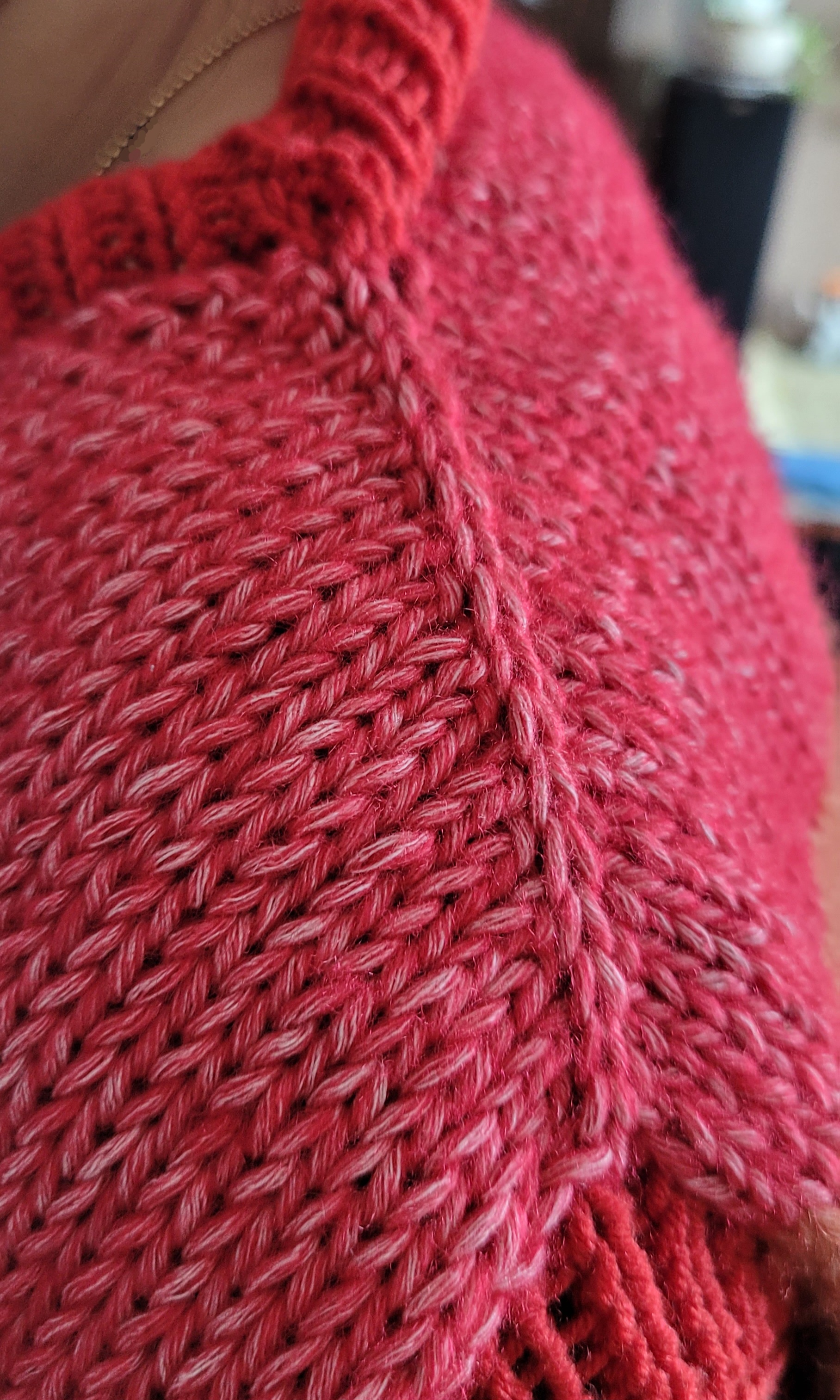 어깨라인 마음에 들 때까지 하느라 풀고 새로 시작하길 네 번 반복해야했네.