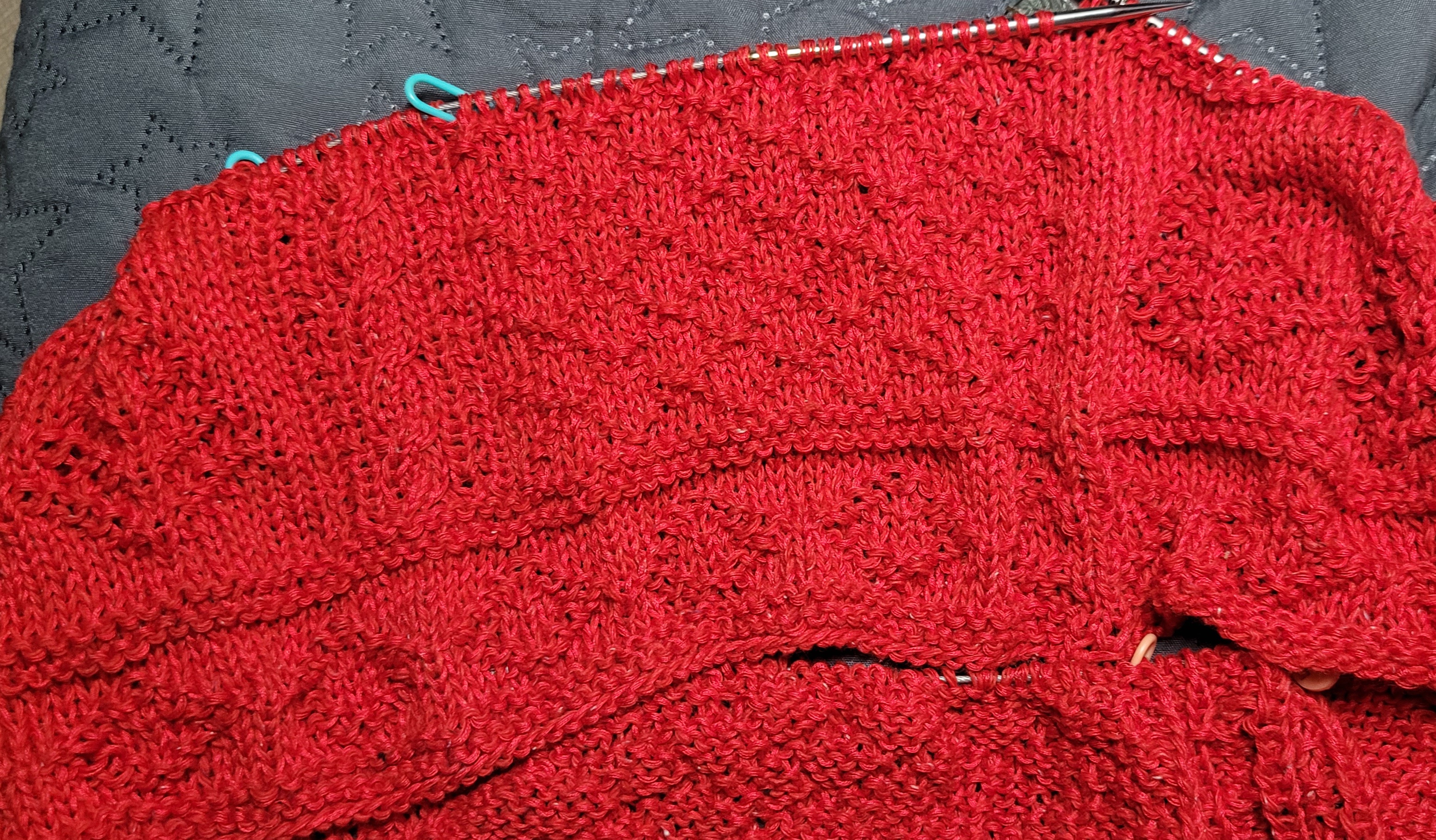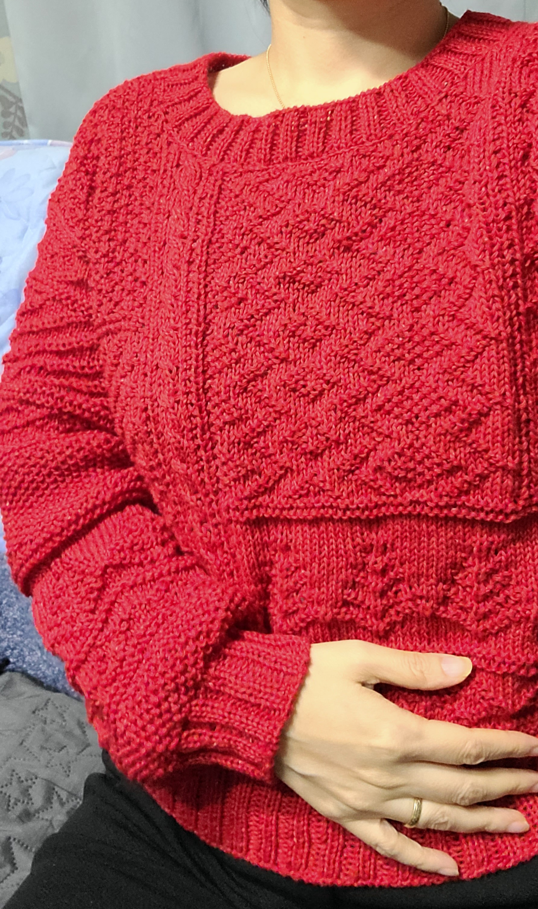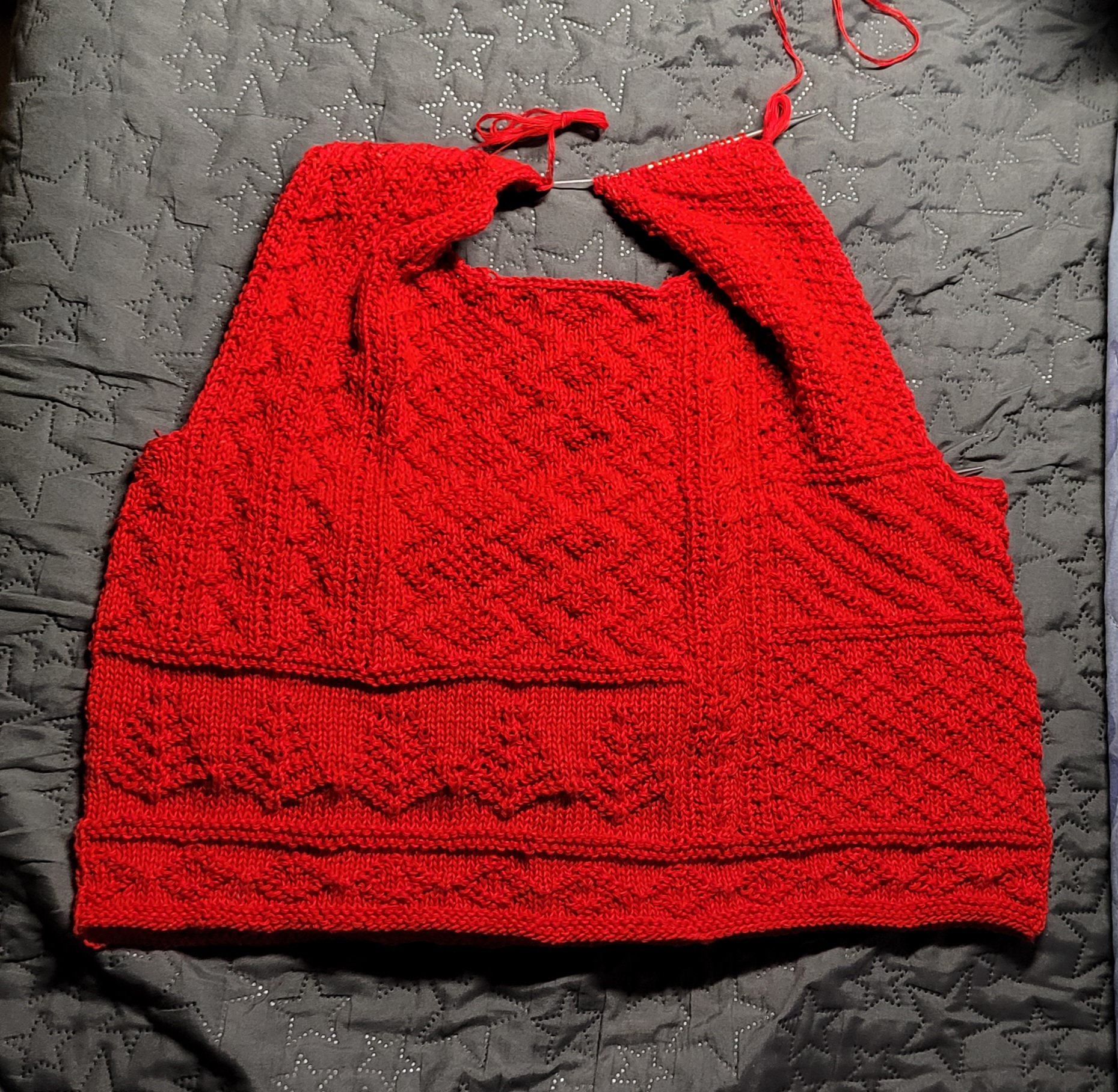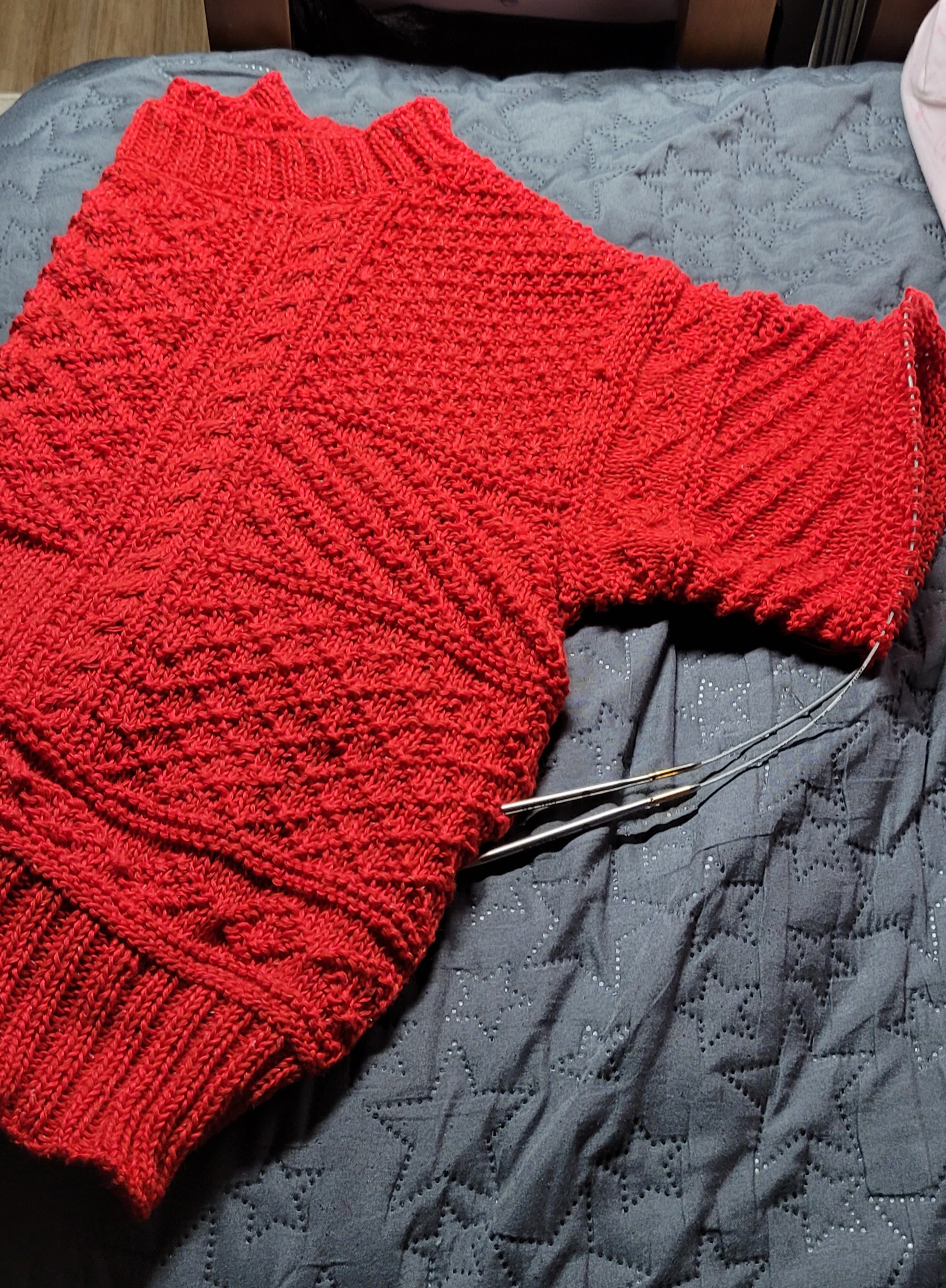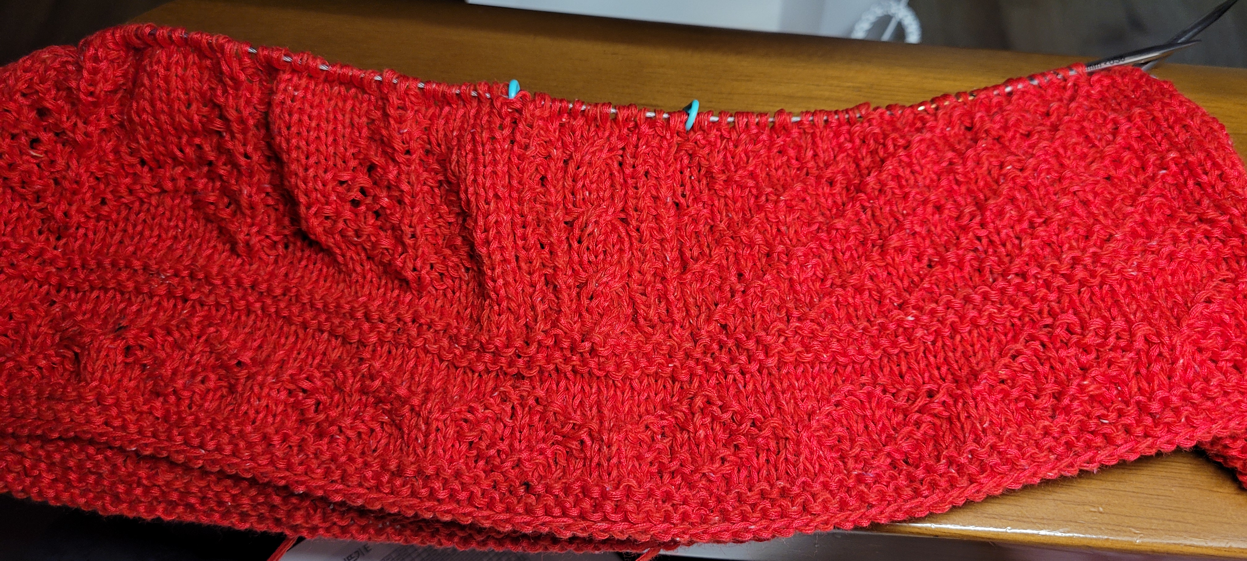 앞넥도 좀 더 길게 떠서 목을 좀 더 깊게하고 어깨선을 뒤로 넘겼다. 앞뒤 확실히 구분되고 편하네.