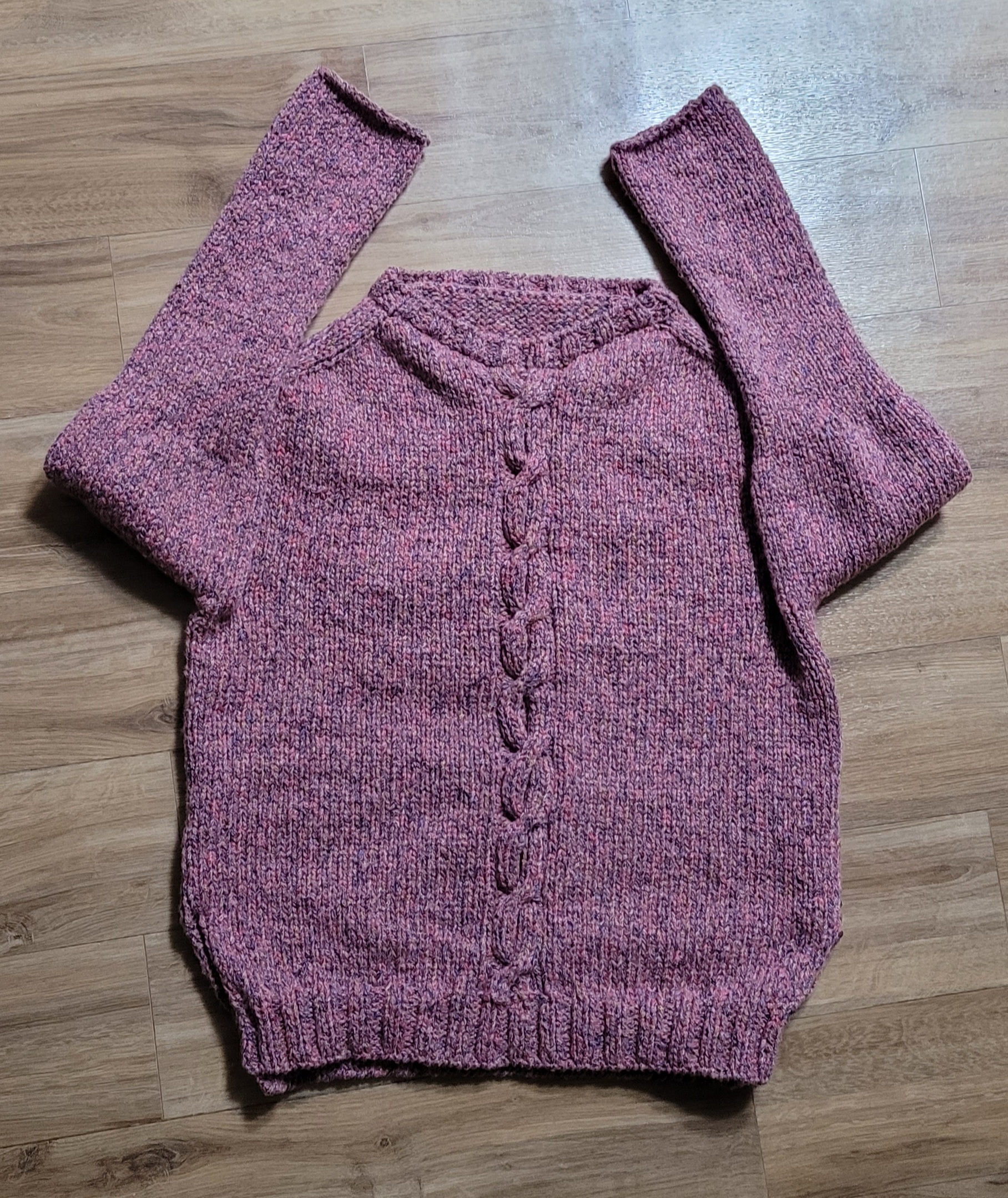 굵은 실민데 6미리로 떠서 약치밀조직이 되어버린 덕에 소매는 기양 메리야스로 끝내고 마무리를 조금 도톰하게 해버렸는데도 전혀 말리지 않는다.