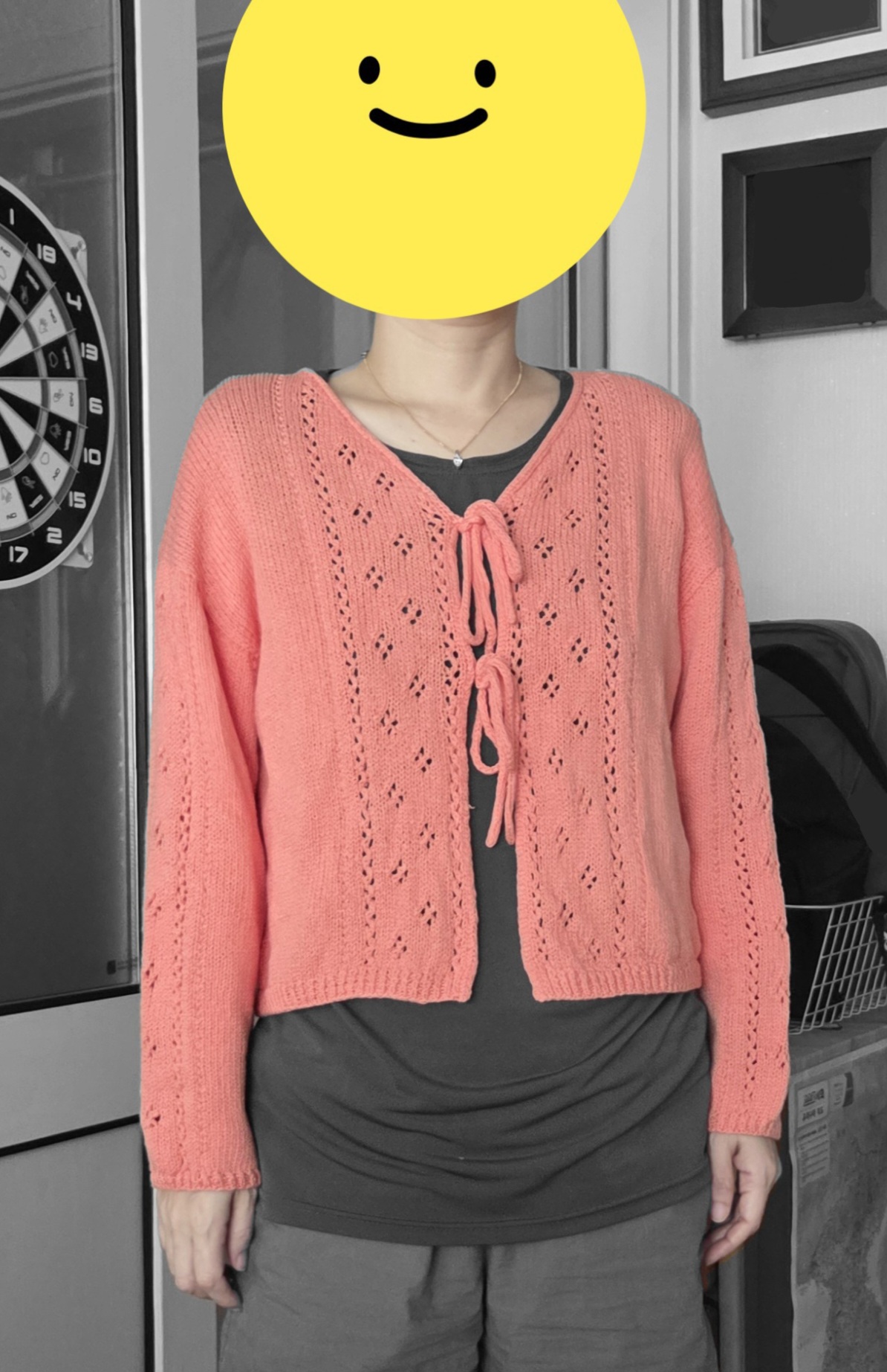 날이 너무 더워서 밖에서 착샷 찍을 엄두가 나지 않아서 배경은 안 예쁩니다. 그래도 일랑일랑 가디건의 예쁜 무늬가 잘 나온 것 같아 부끄럽지만 올려봅니다. 카페라도 가서 찍어야 하는데 너무 더워서 엄두가.. ㅠㅠ