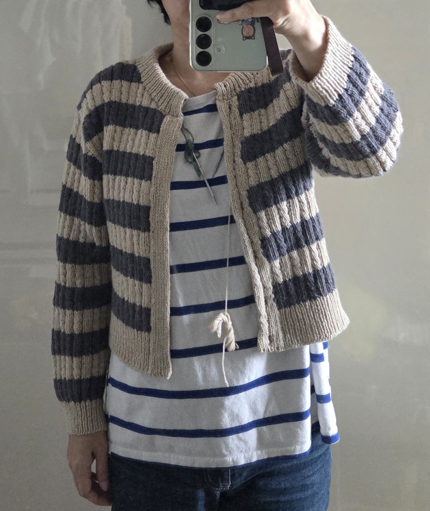 덧. 나는 짧은 기장의 가디건을 선호하지 않는다. 시간을 되돌릴 수 있다면 배색 한세트 더 뜨고 싶다. ㅠㅠ