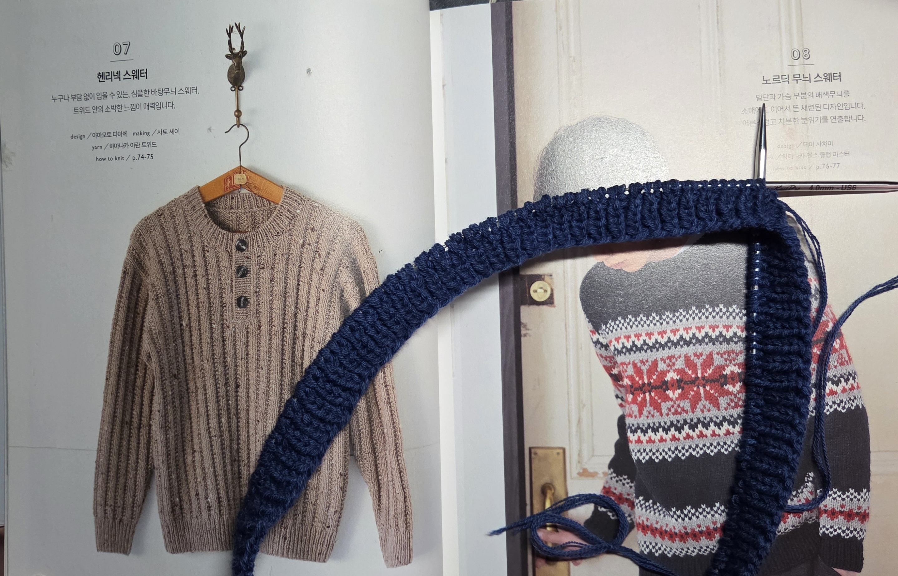 도안. M,L,XL사이즈로 뜨는 남자니트 속 헨리넥스웨터