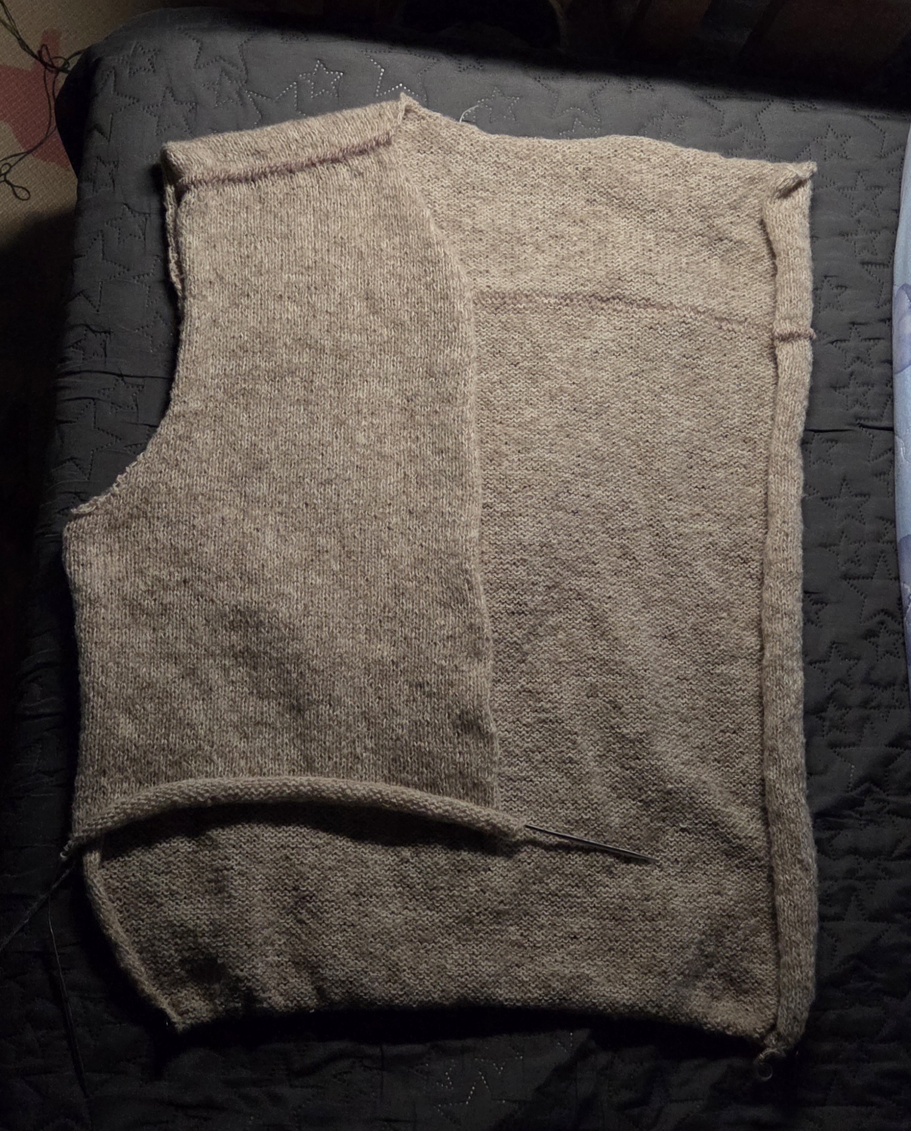 키가 작아서 원본보다 앞, 뒤를 20단씩 적게 떴는데 입어보니 언발보단 앞, 뒤가 동일한 편이 더 좋았을 것 같더라. 개인적인 취향이다.