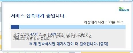 원서접수를 누르니 대기시스템이 뙇 뜬다.
