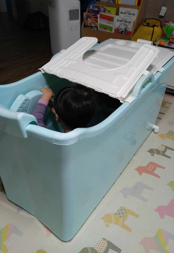 그래서 두아이가 한꺼번에 들어갈 수 있는 대형사이즈면서 평소에 공간을 덜? 차지하게 접이식으로 구매했다.