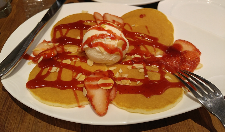 핫케익세트 하나에 커피 한잔만 시키고 싶었구만 언어의 벽이란.