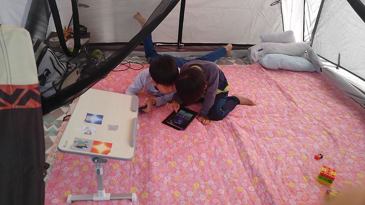 지금은 침낭 3개를 연결해서 한꺼번에 들어가 자는데 내년엔 침낭 하나 더 사서 인당 하나씩 들어가야할 것 같다.