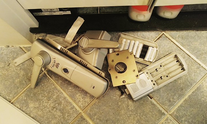 세번 정도의 작업 후에 마침내 완벽하게 교체된 도어락!