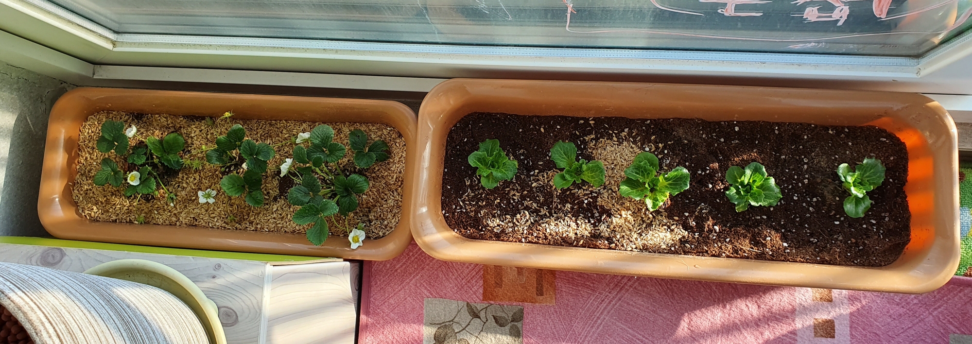 딸기와 상추 모종으로 작은 텃밭