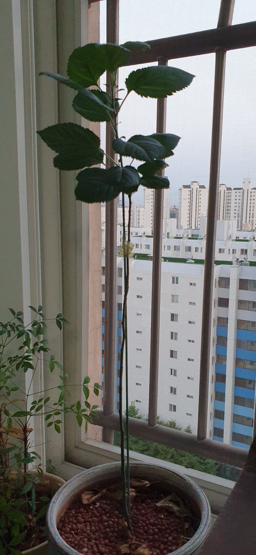 30센티정도로 잘 자라다가 갑자기 잎사귀들이 쫙쫙 떨어져 나가서 가지 맨 끝에만 작은 잎사귀들이 간신히 움켜잡고 있었었다.
