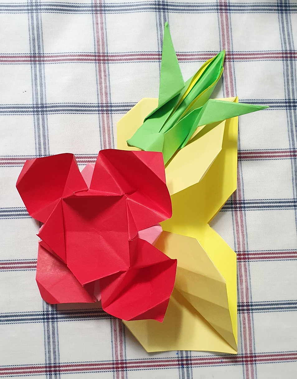 꽃 한송이와 메뚜기를 접어서