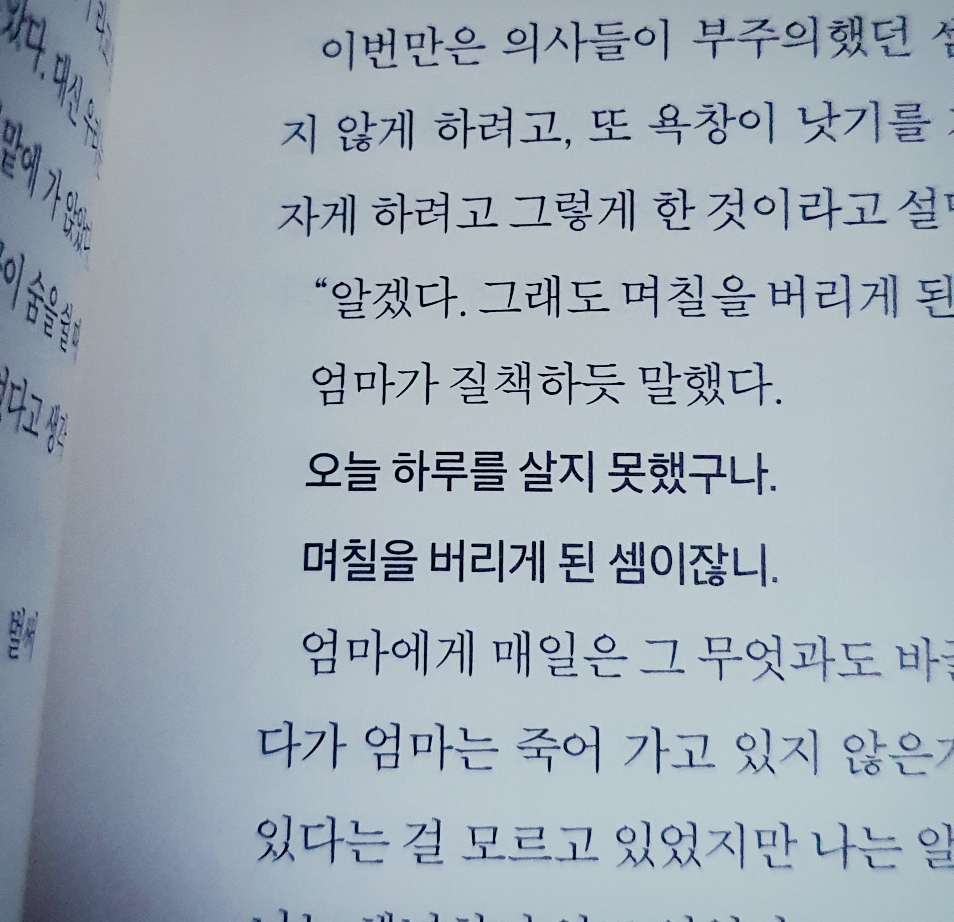 특히 이 책은 엄마의 마지막과 나의 모습을 그려볼 수 있어서 몰입감이 있었다.