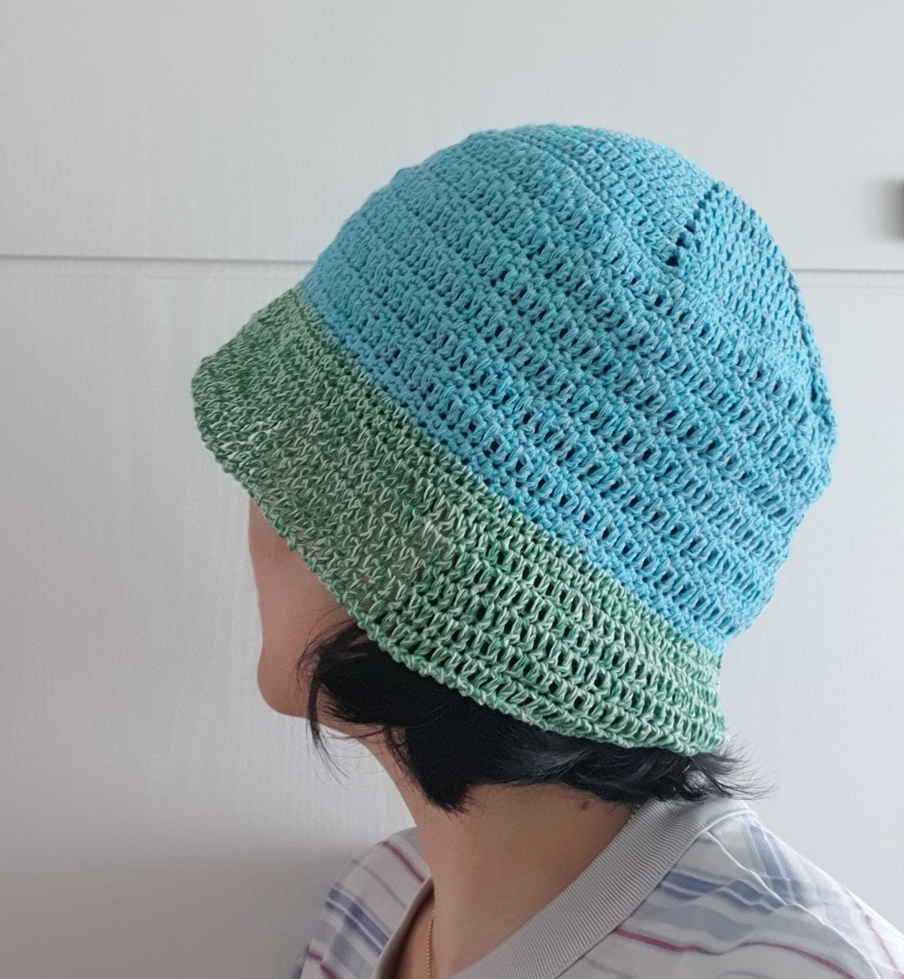 색 2개씩 섞은건데 파랑이 떨어져서 챙은 녹색으로.