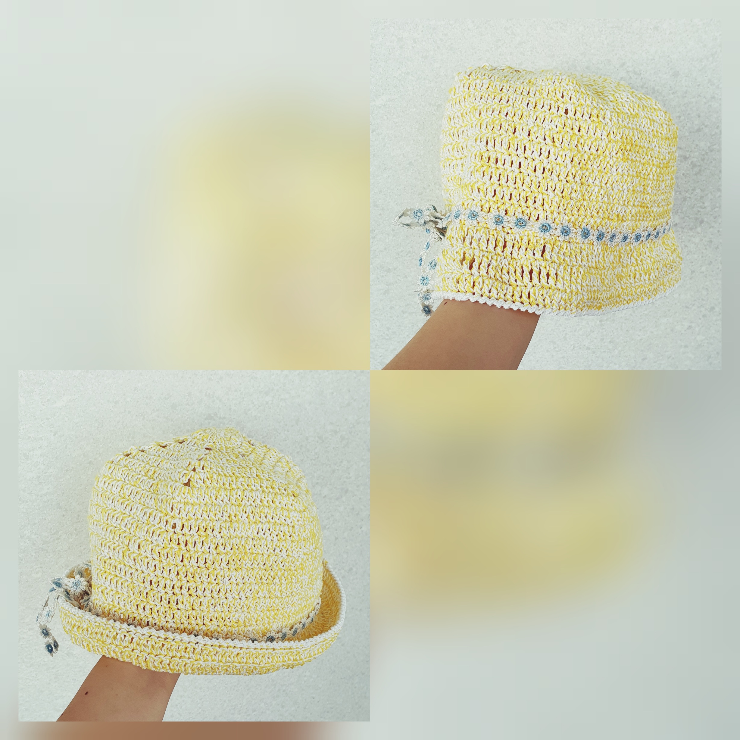 울 둘째가 맞을 정도라서 줄이라고 꽃레이스 달아줬는데 과연. 끝부분을 단단하게 처리했더니 챙이 저렇게 된다.