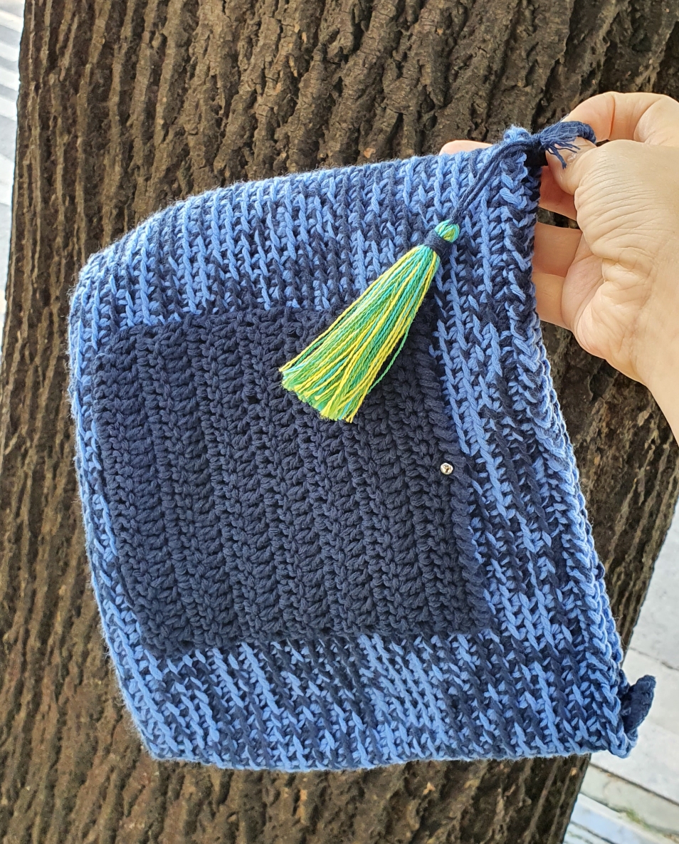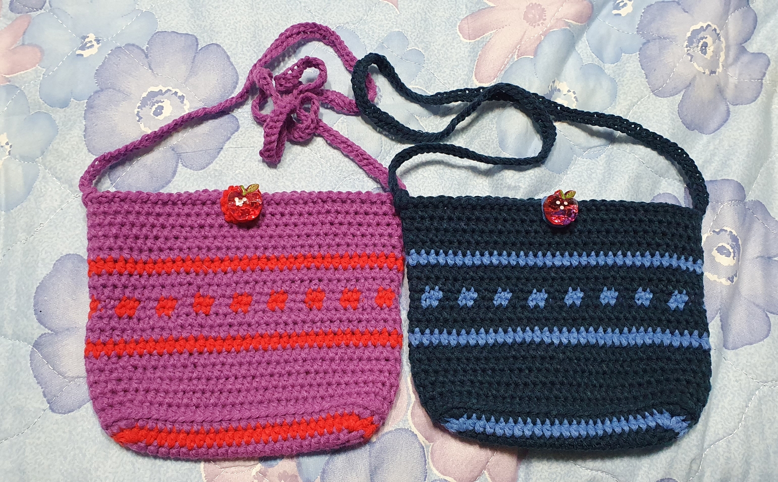 모티브 하나로 한면씩. 모티브 두개로 가방을 만들었다.