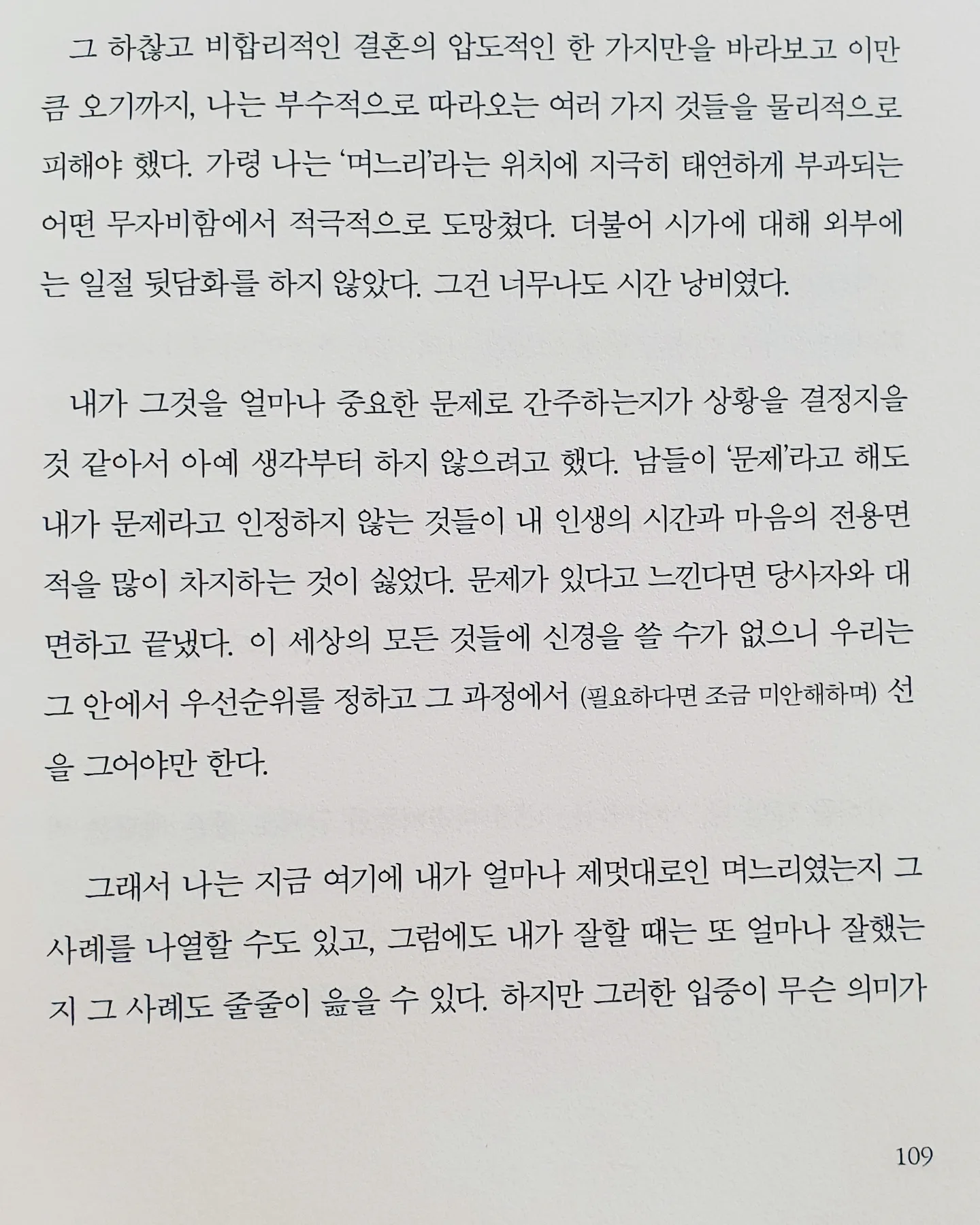 캡처하진 않았지만 결혼 당일 이야기에서 내가 느꼈던 감정이 고스란히 적혀있어서, 내가 특별한 느낌이 들기도 하고(작가와 동일한 생각을 했었네), 반대로 나같은 생각을 한 사람이 또 있네. 역시 내가 특이한 게 아니었어 란 생각도 들었다.
