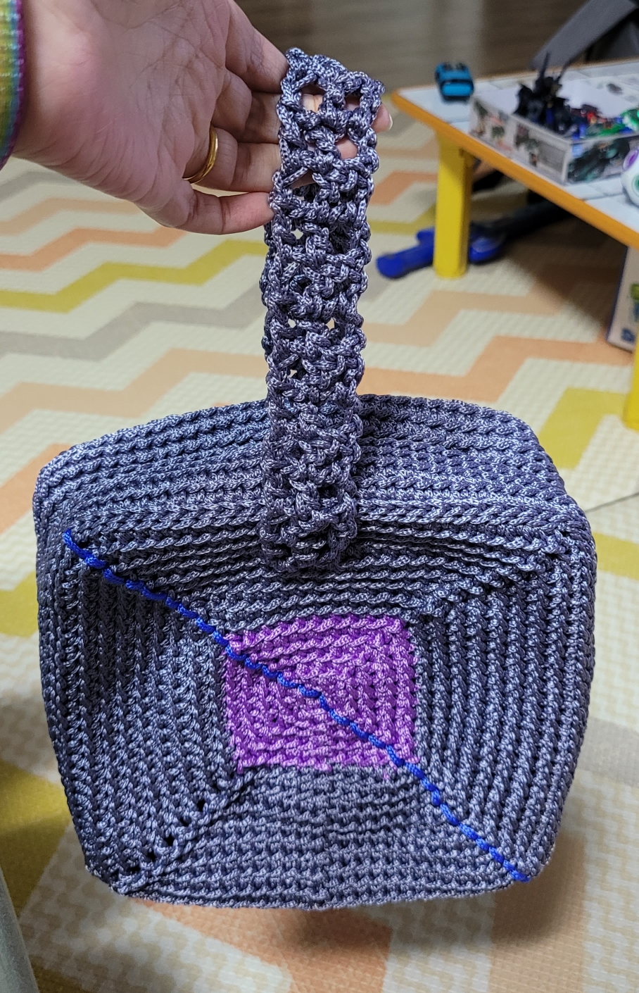재밌어보여서 만들었는데 평면이 쭈글쭈글해져서 좀 아쉽게 되었다. 지퍼달면 딱 좋을 입구형태인데 꼬매는게 일이 될 것 같아서 저렇게 스트랩을 달았다.