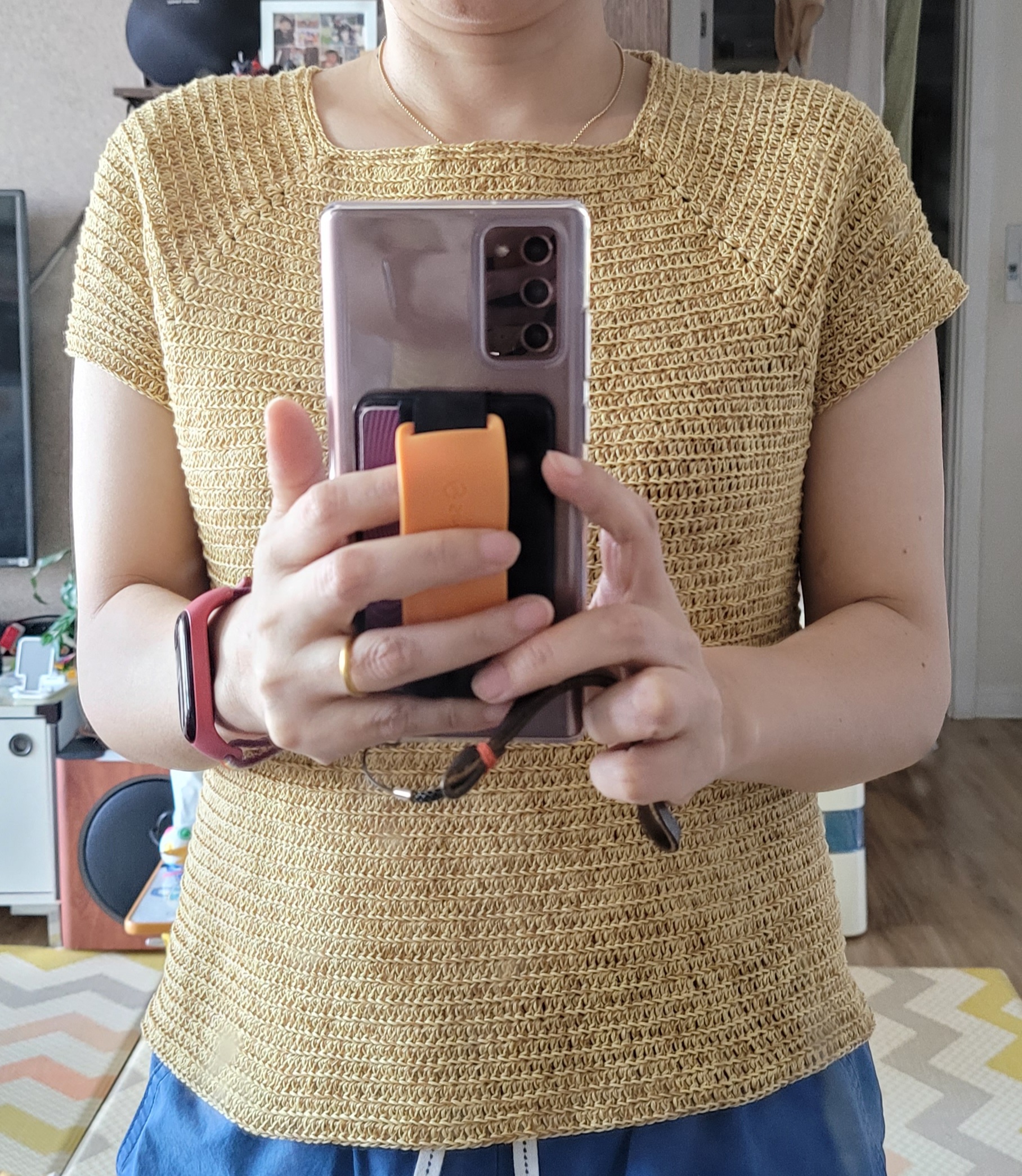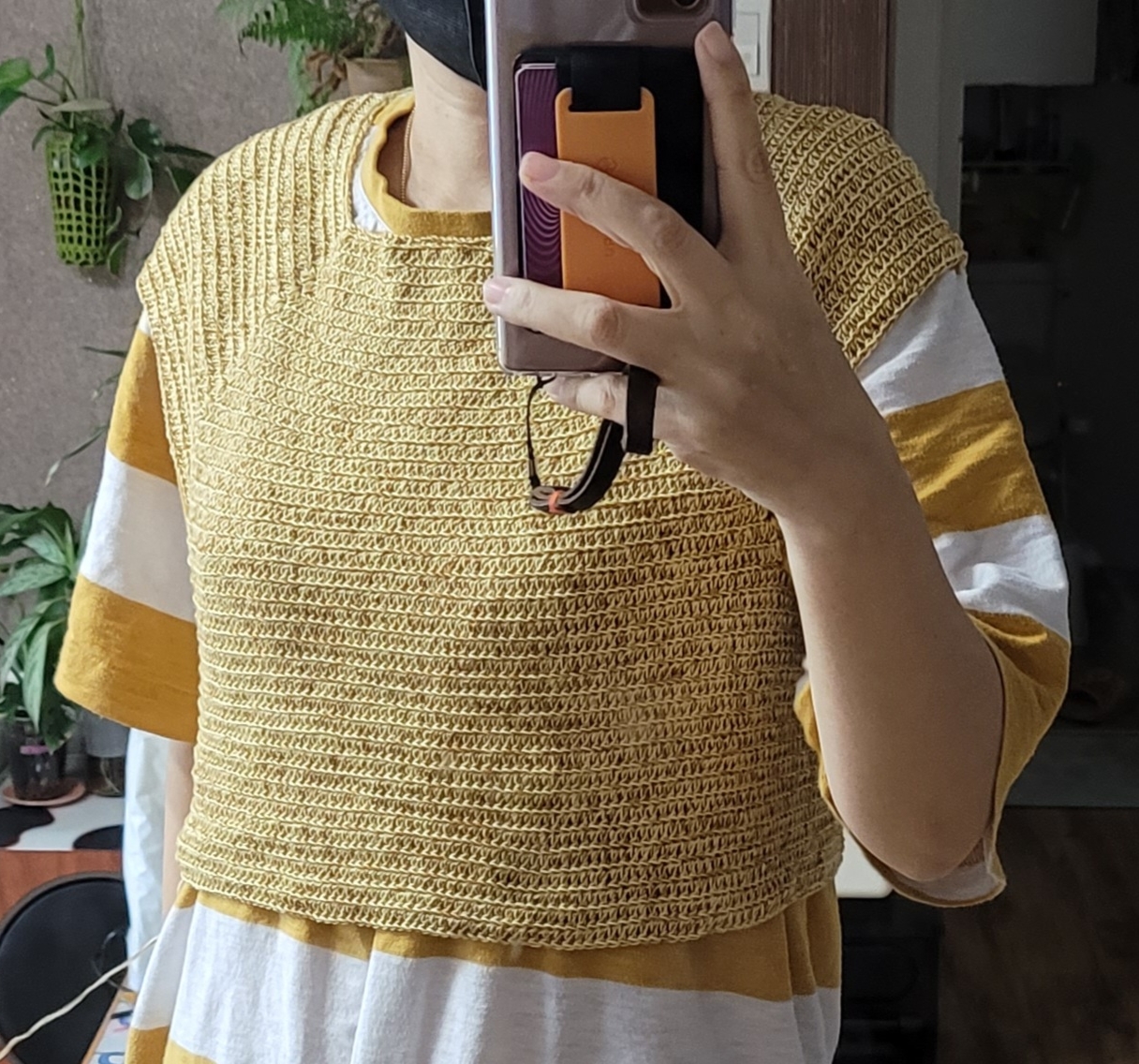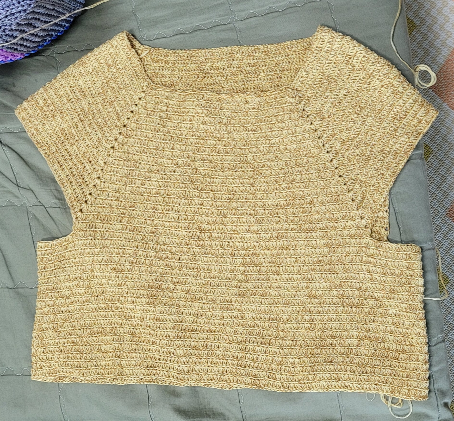 이거 바로 전에 겨드랑이까지 떴다가 엄마가 이상하니 다시 풀고 뜨라해서 .. 풀고 나눔받은 콘사실 합사해서 다시 떴다.